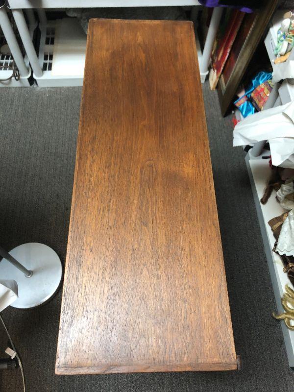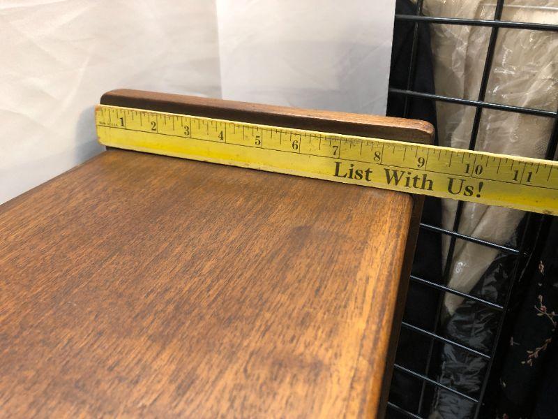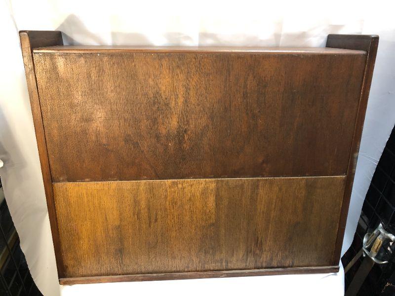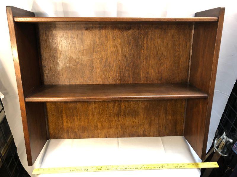 32" double shelf wood hutch. Great for added display or storage. Set on a desk, table, or dresser for added display. 27" tall.