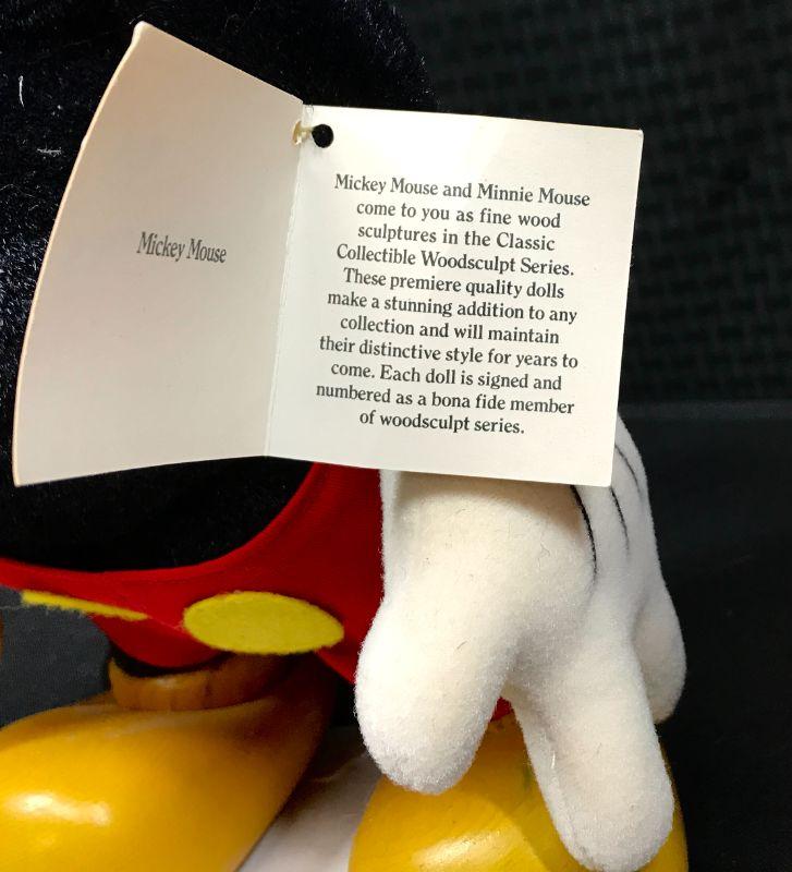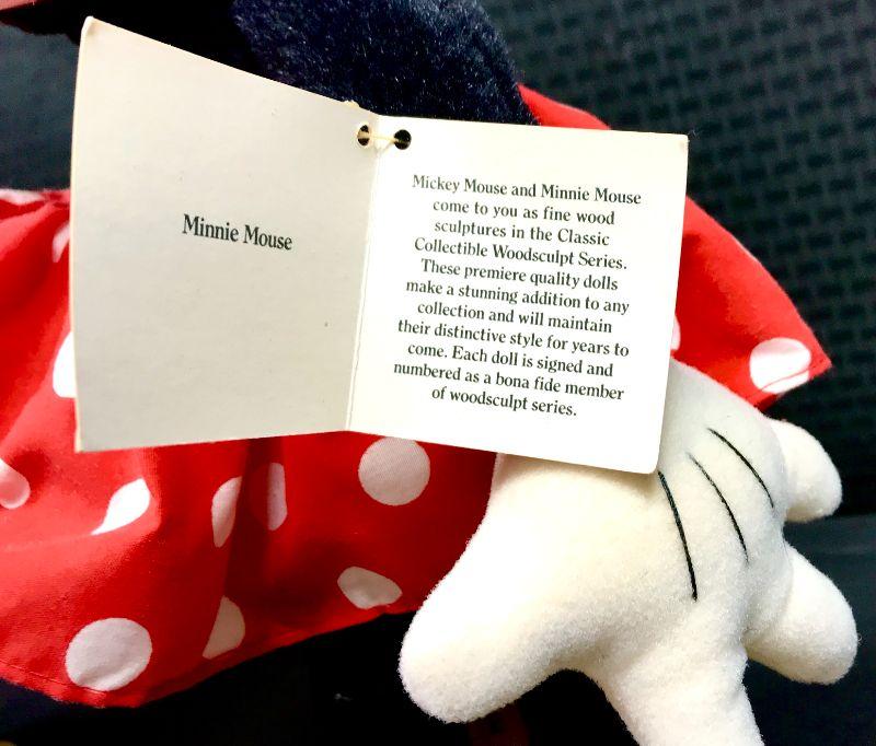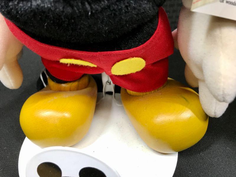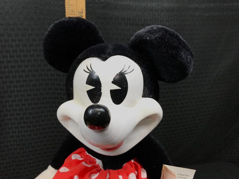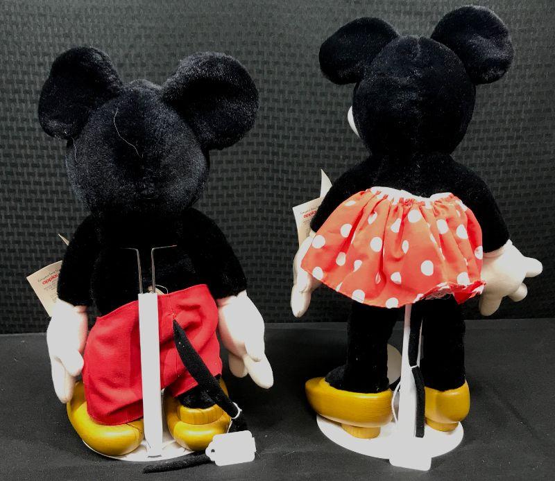 Pair of Disney Collection Collectibles Mickey & Minnie Mouse plush dolls. Vintage styled with white faces and "pacman" eyes. Come with stands and original hang tags attached. About 16" tall. #020-01023