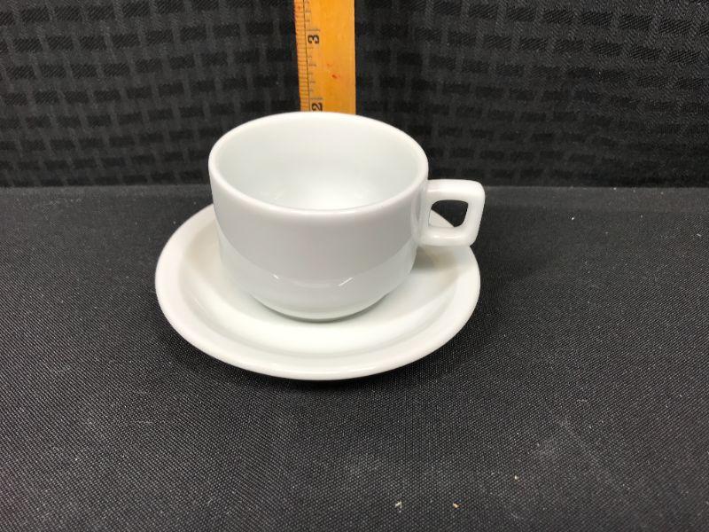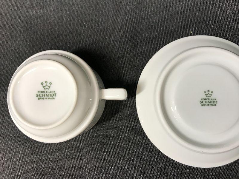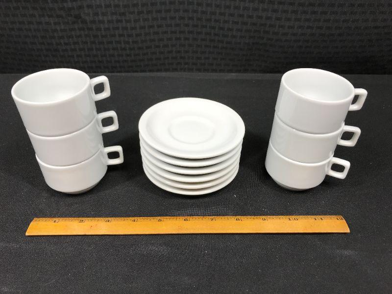 Set of 6 white espresso cups & saucers from Schmidt Porcelain. Made in Brazil. Good condition. #020-0415a3