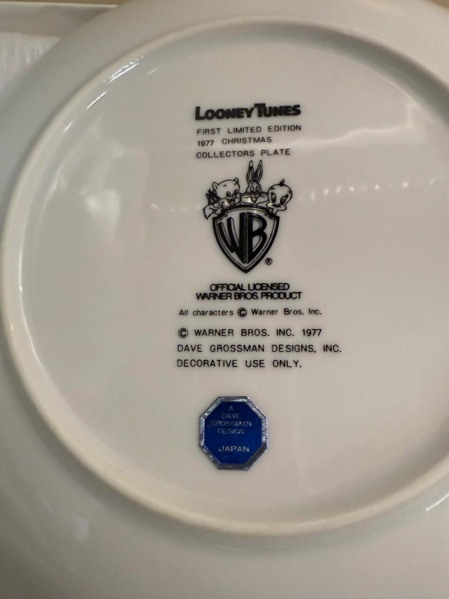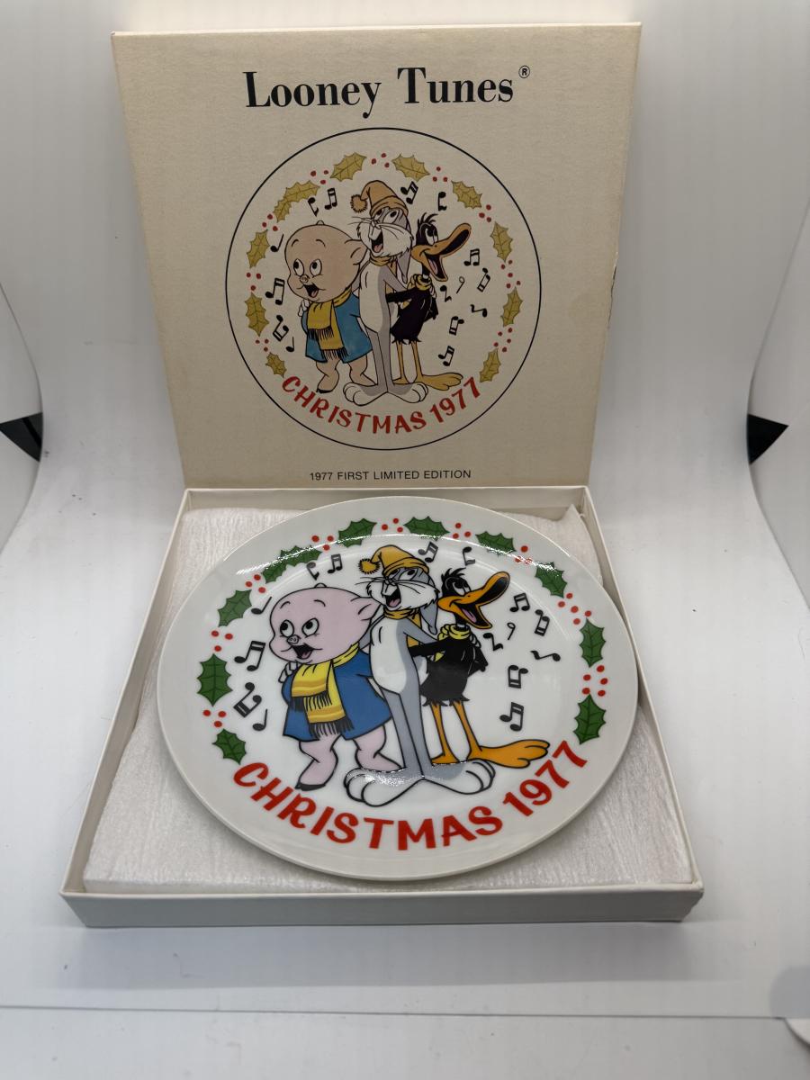 Looney Tunes Limited Edition Christmas Collectors Plate 1977 Porky Pig, Bugs Bunny and Daffy Duck
