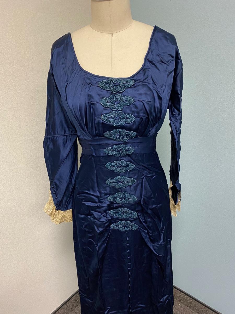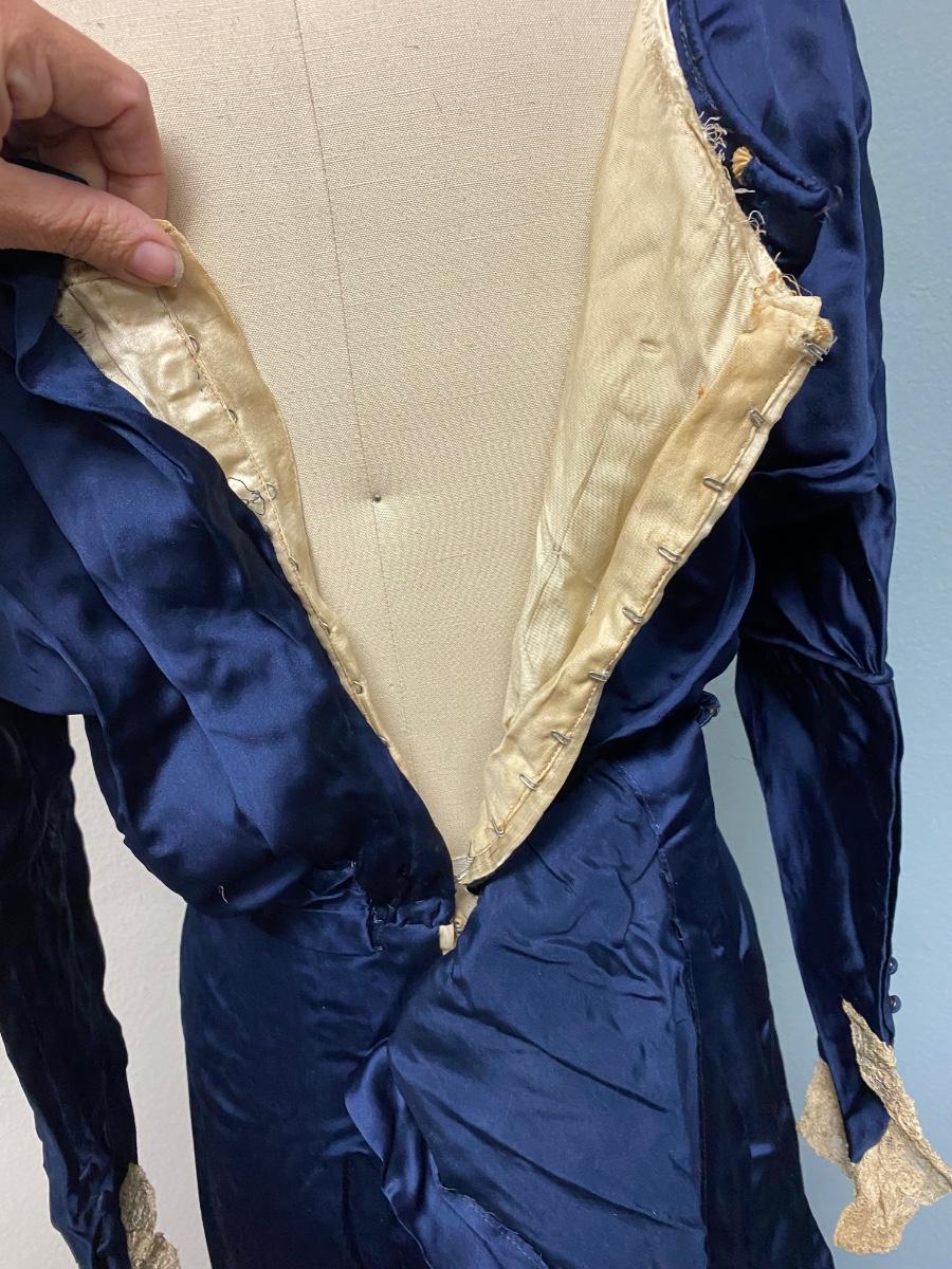 Antique Victorian Royal Blue Evening Afternoon Dress with Note