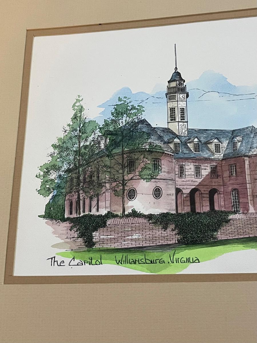 Original Signed Watercolor "The Capitol - Williamsburg, Virginia"