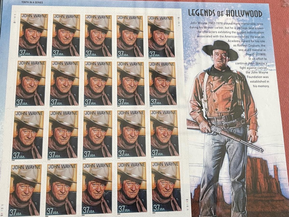John Wayne Legends of Hollywood 20 - 37cent Stamp Sheet - Mint Condition - Unused