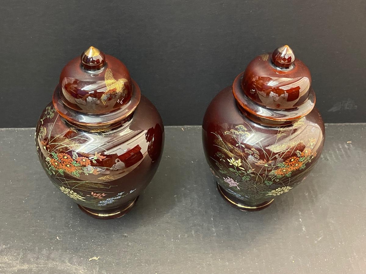 Two Vintage Japan Ginger Jars with Lids