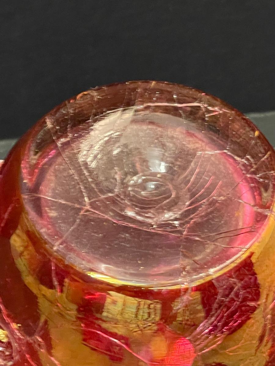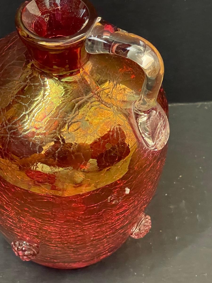 Antique Cranberry Crackle Glass Jug
