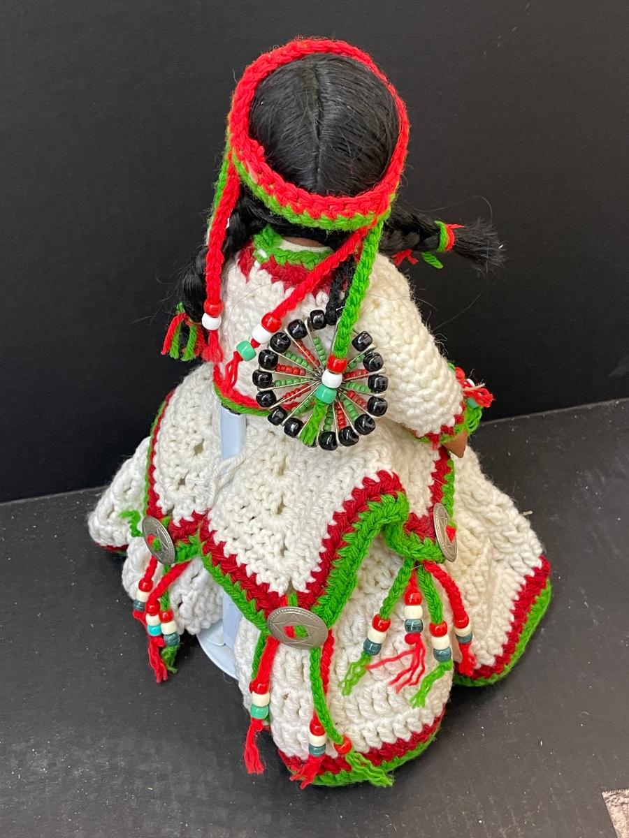 Vintage Indian Girl Doll with Handmade Crocheted Dress