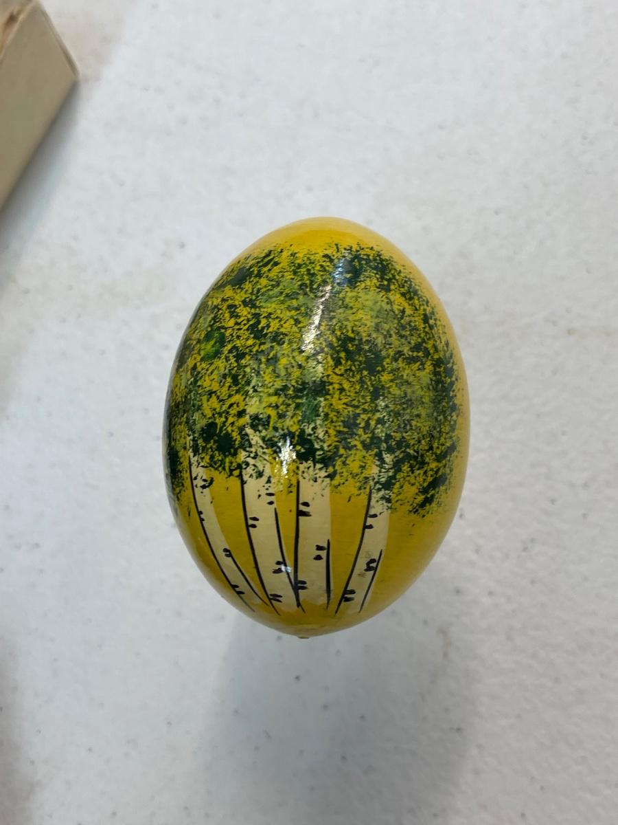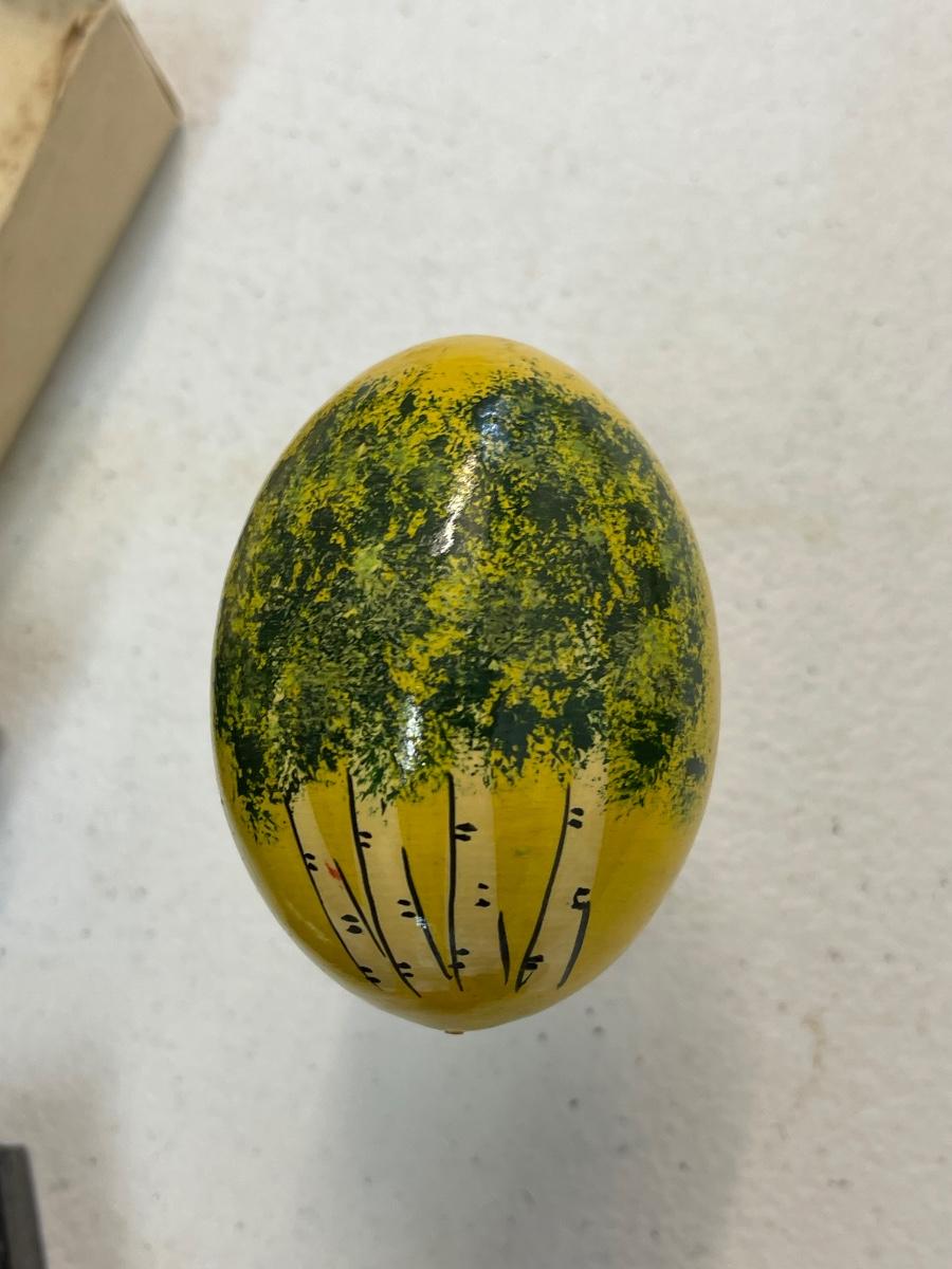 Vintage Hand Painted Khokloma Wood Egg with Stand