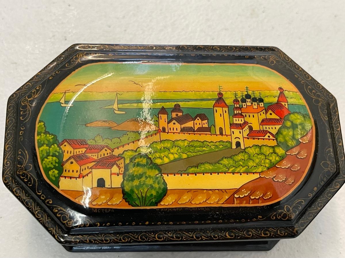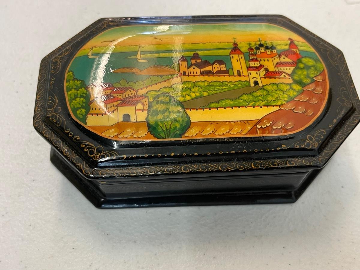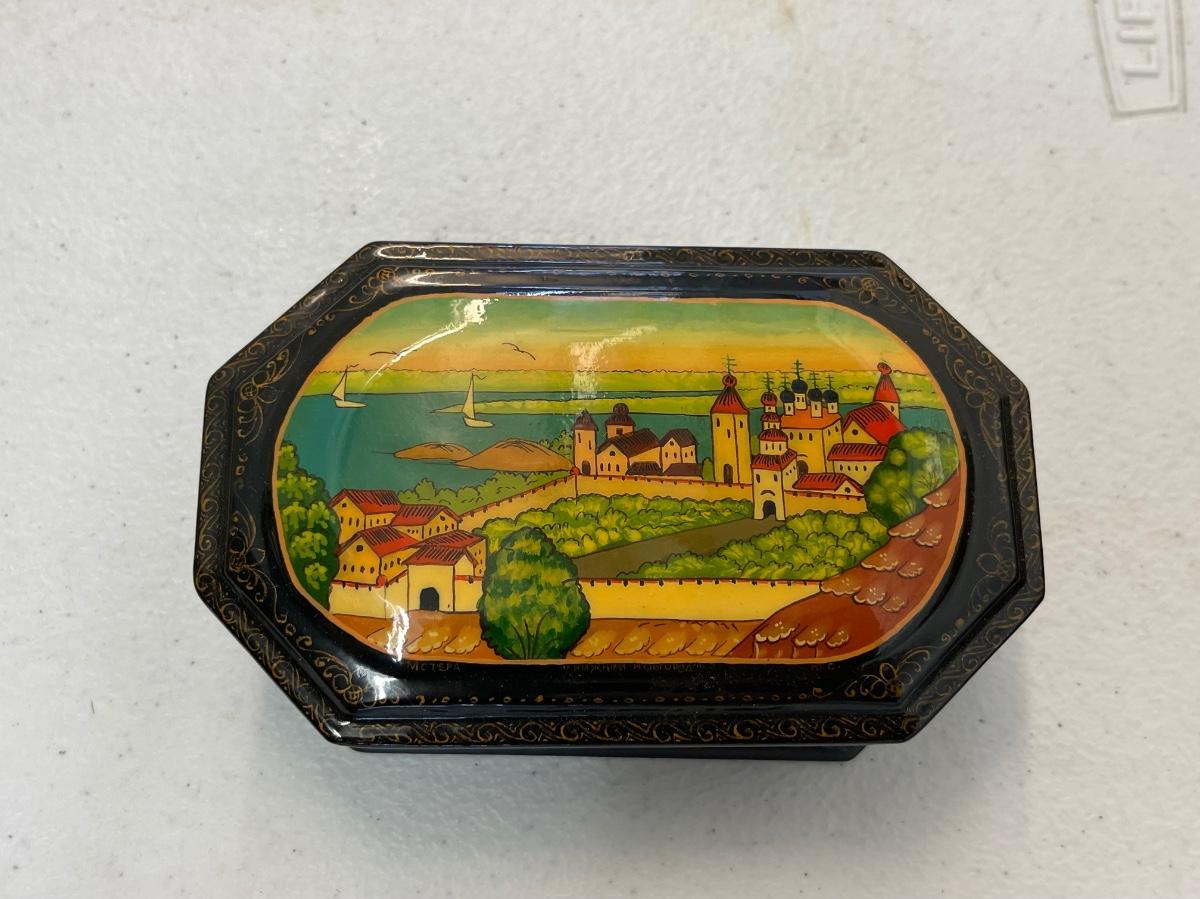Vintage Hand Painted Lacquer Khokloma Wood Trinket Box