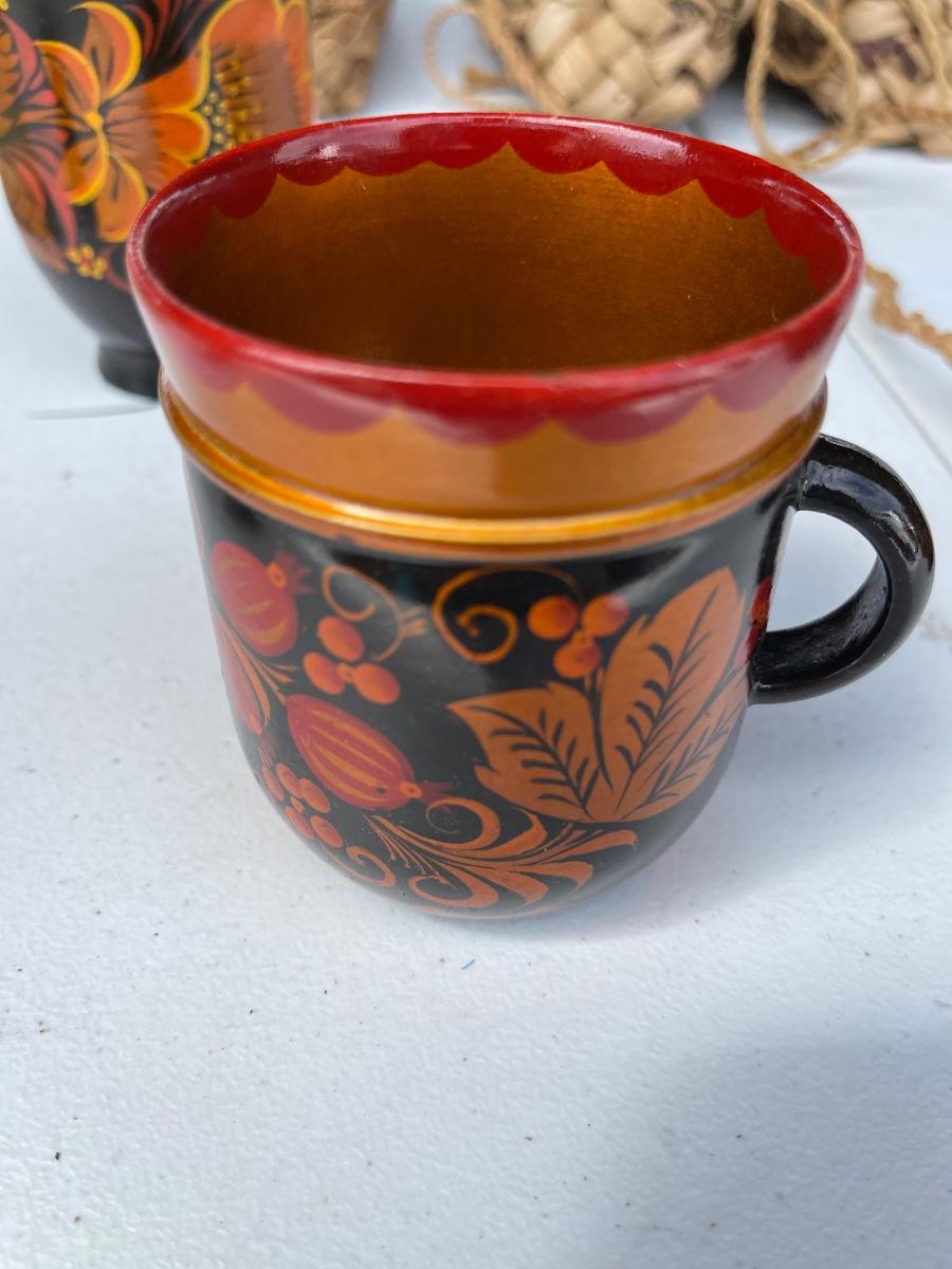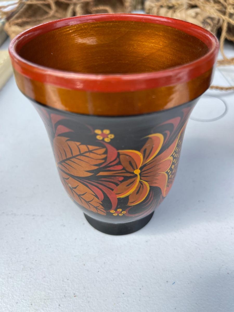 Set of Two Vintage Hand Painted Khokloma Wood Cups