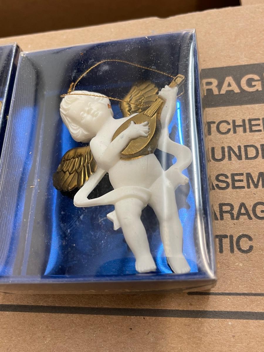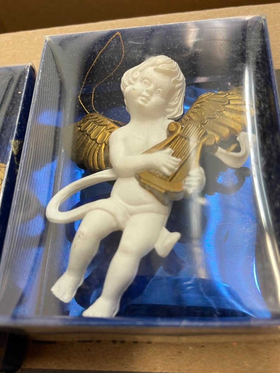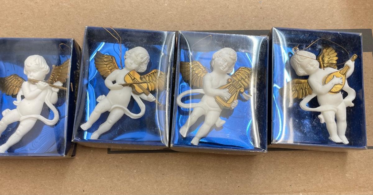 Set of Four 1989 Cherub Musician Angel Ornaments - NEW in box