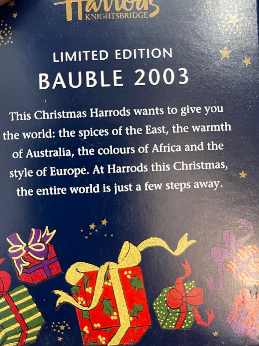 2003 Harrods Glass Limited Edition Bauble Ornament - NEW
