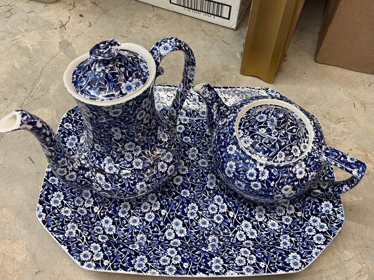 Vintage Royal Staffordshire England "Blue Calico" Coffee and Tea Pot Set