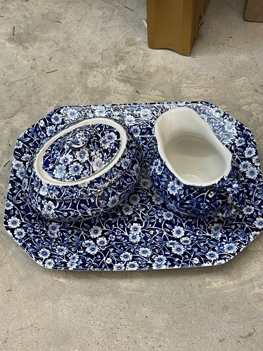 Royal Staffordshire England "Blue Calico" Creamer and Sugar Set