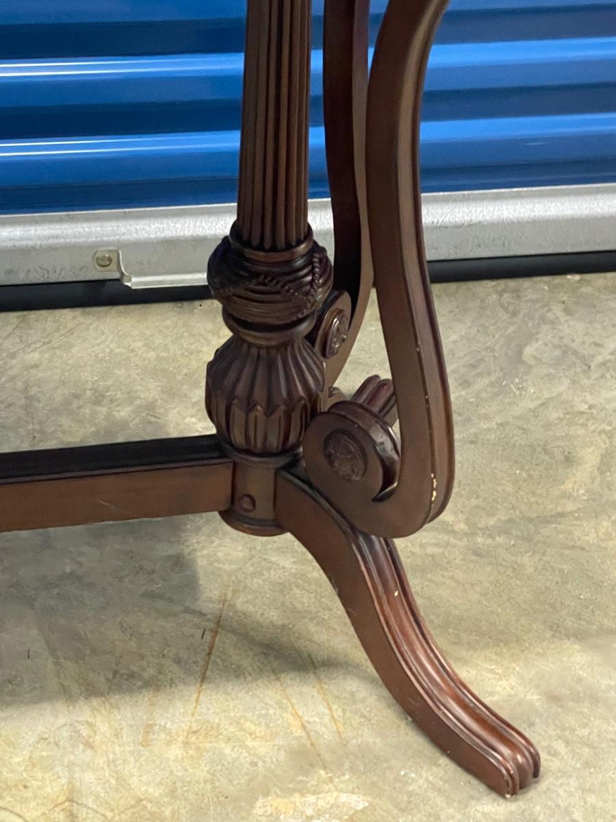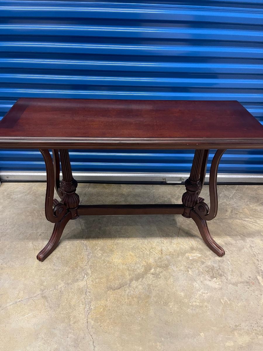 This table is very sturdy and gorgeous. It measures 46 x 18 x 29.