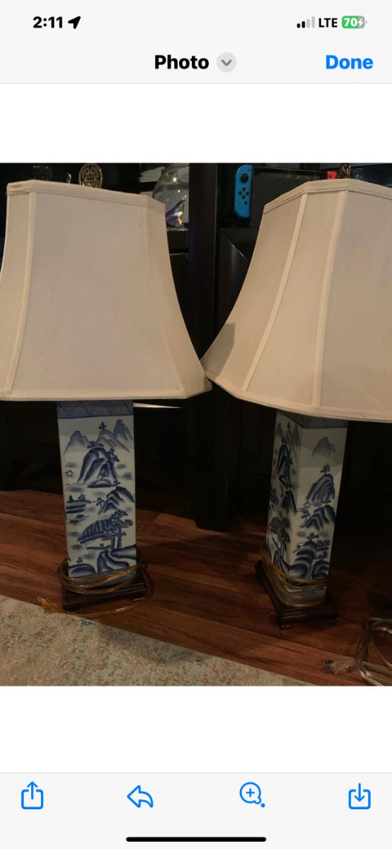 Two Blue and White Japanese Landscape Porcelain Lamps