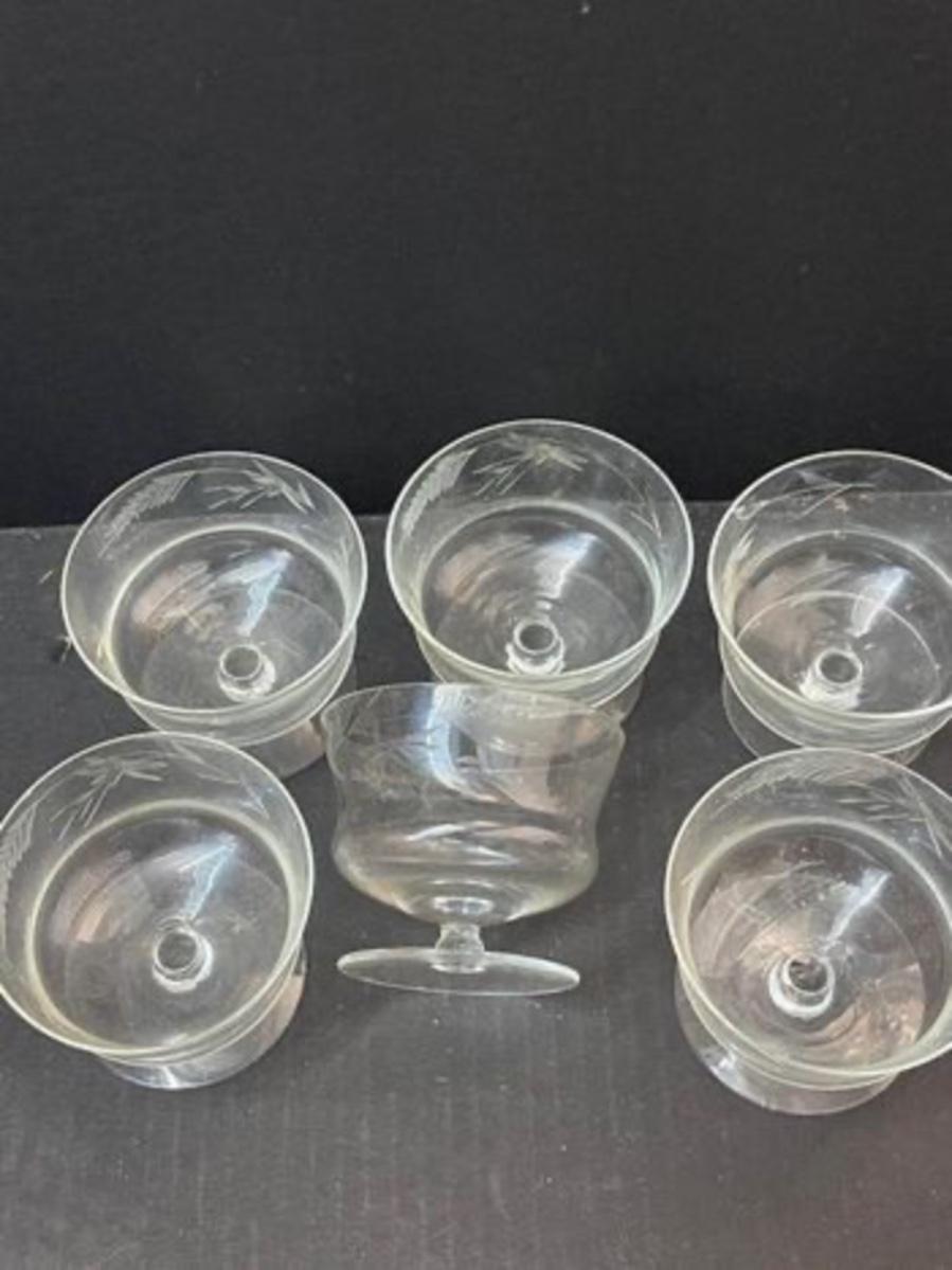 Vintage Set of Six Etched Shrimp Cocktail Glasses