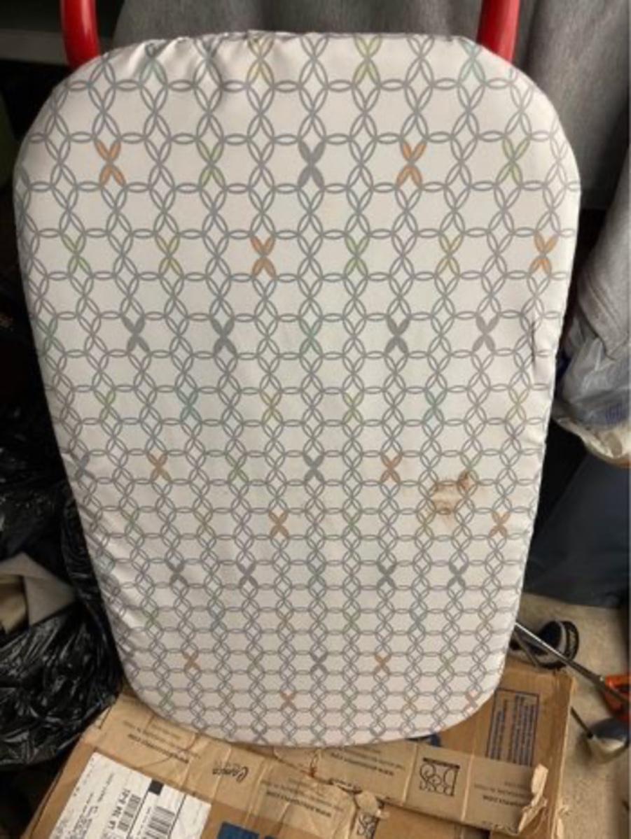 This is new but there is one small dirt spot on cloth from storage. It will come off in wash.