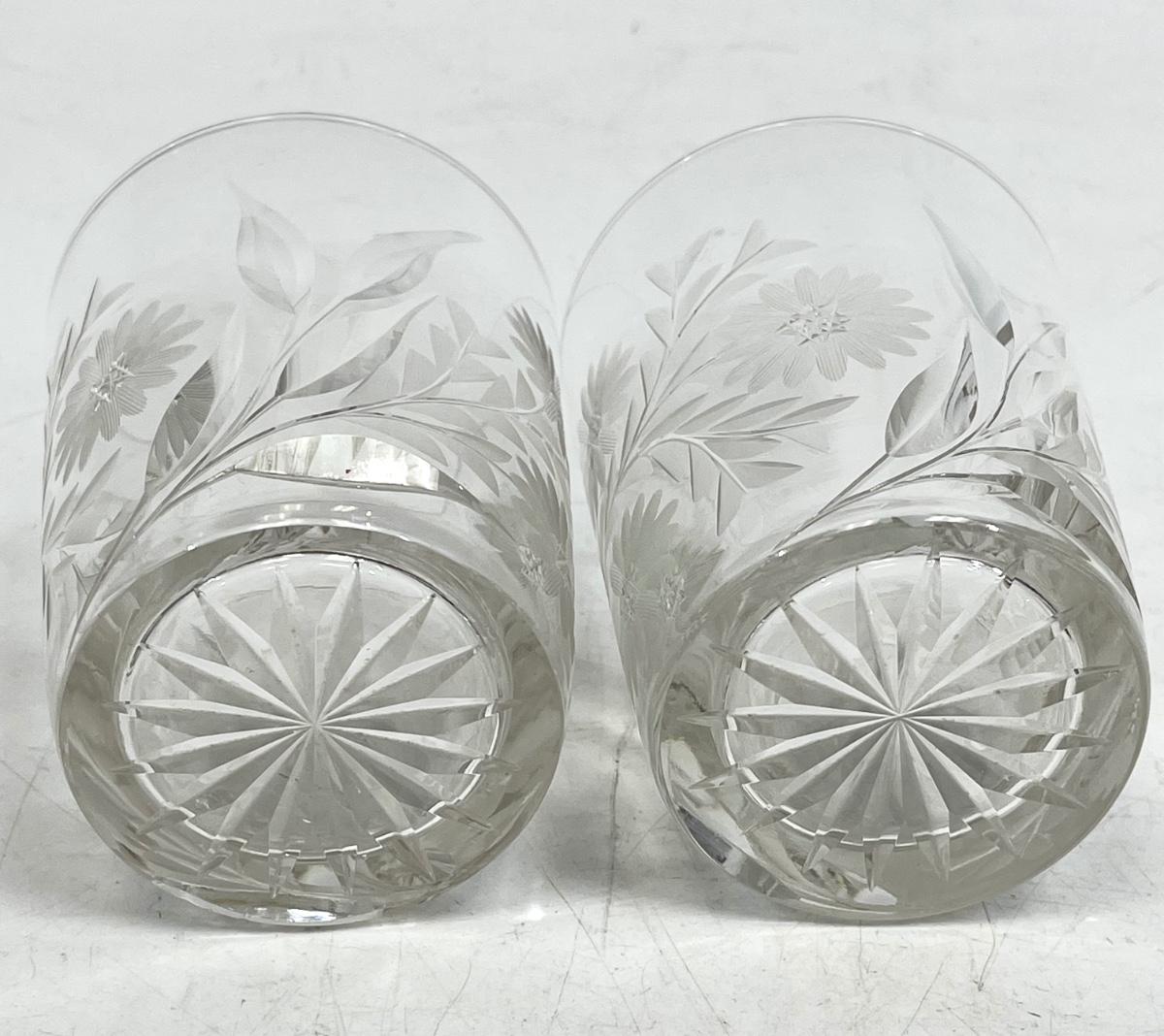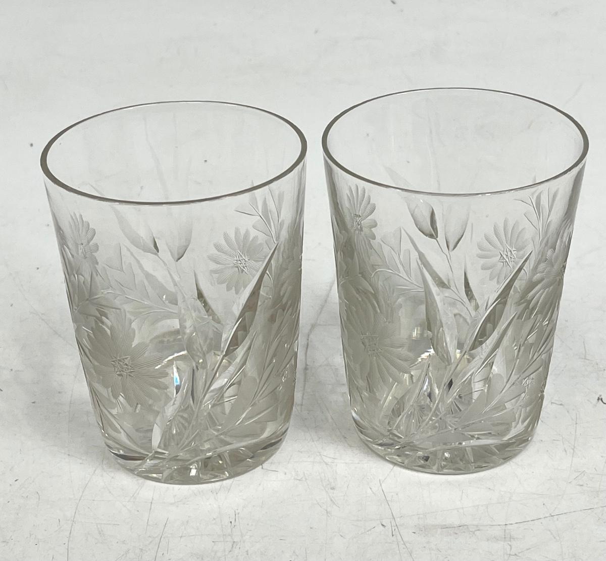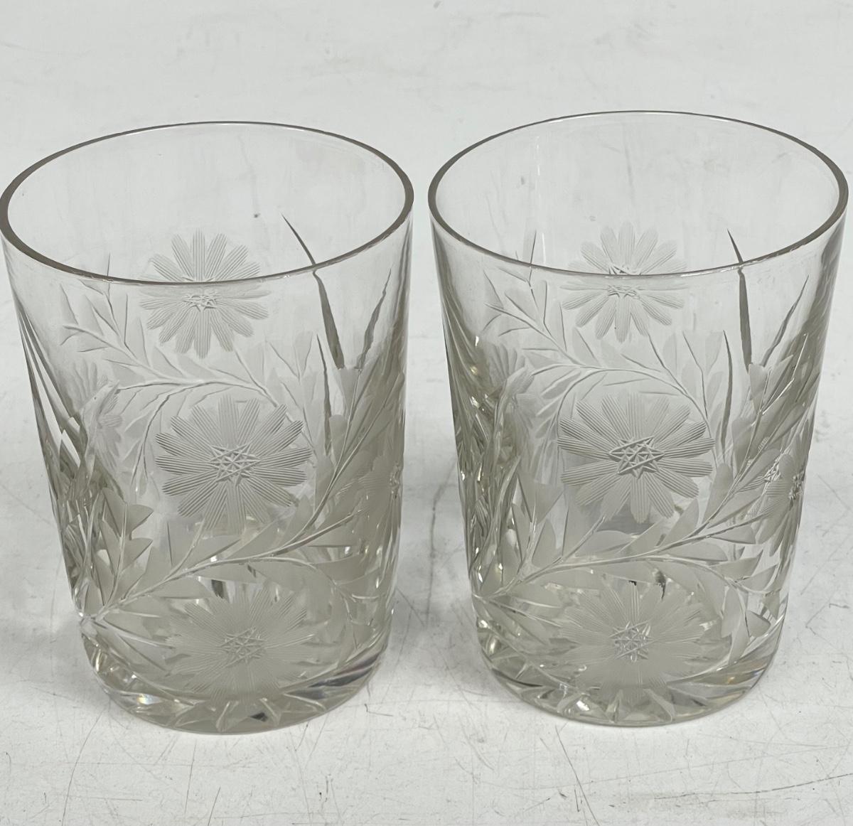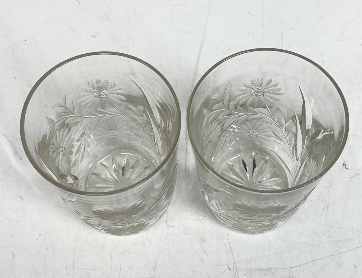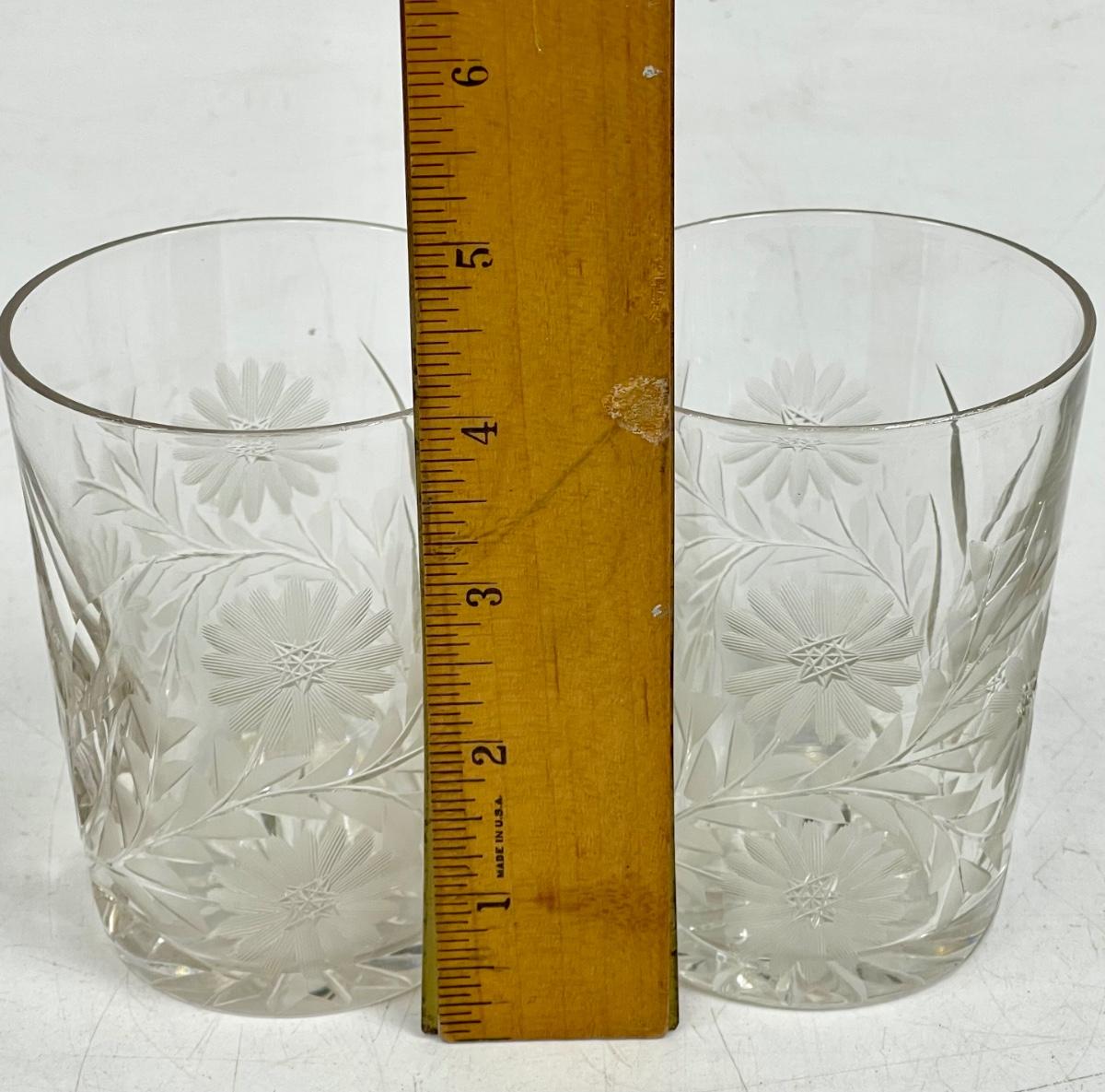 Vintage cut Crystal Glass Tumblers, flower pattern old-fashioned glasses, glass lot 2