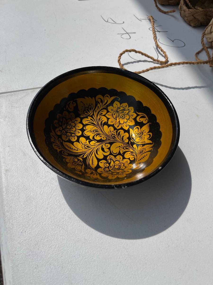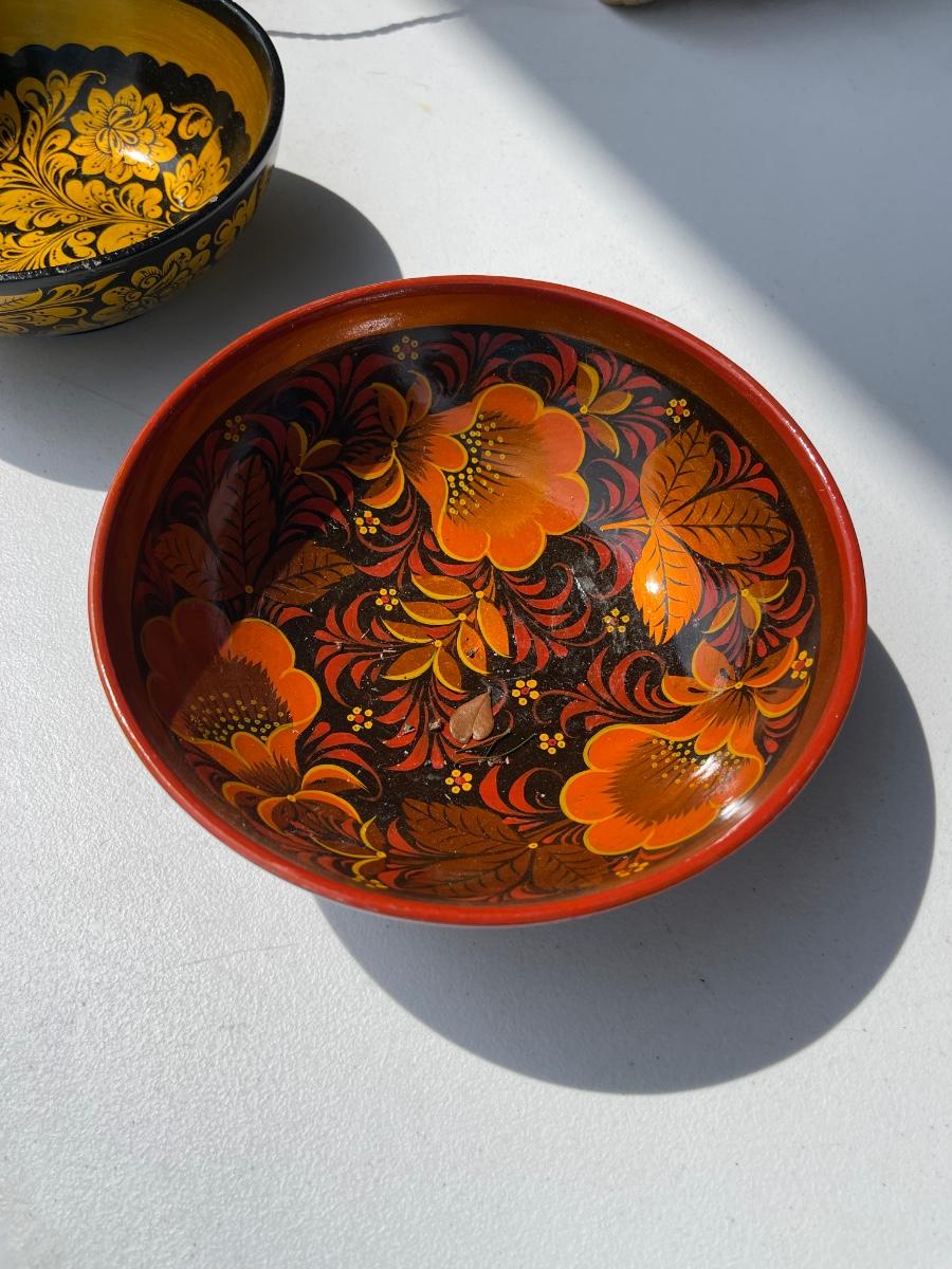 Set of Two Vintage Hand Painted Khokloma Wood Bowls