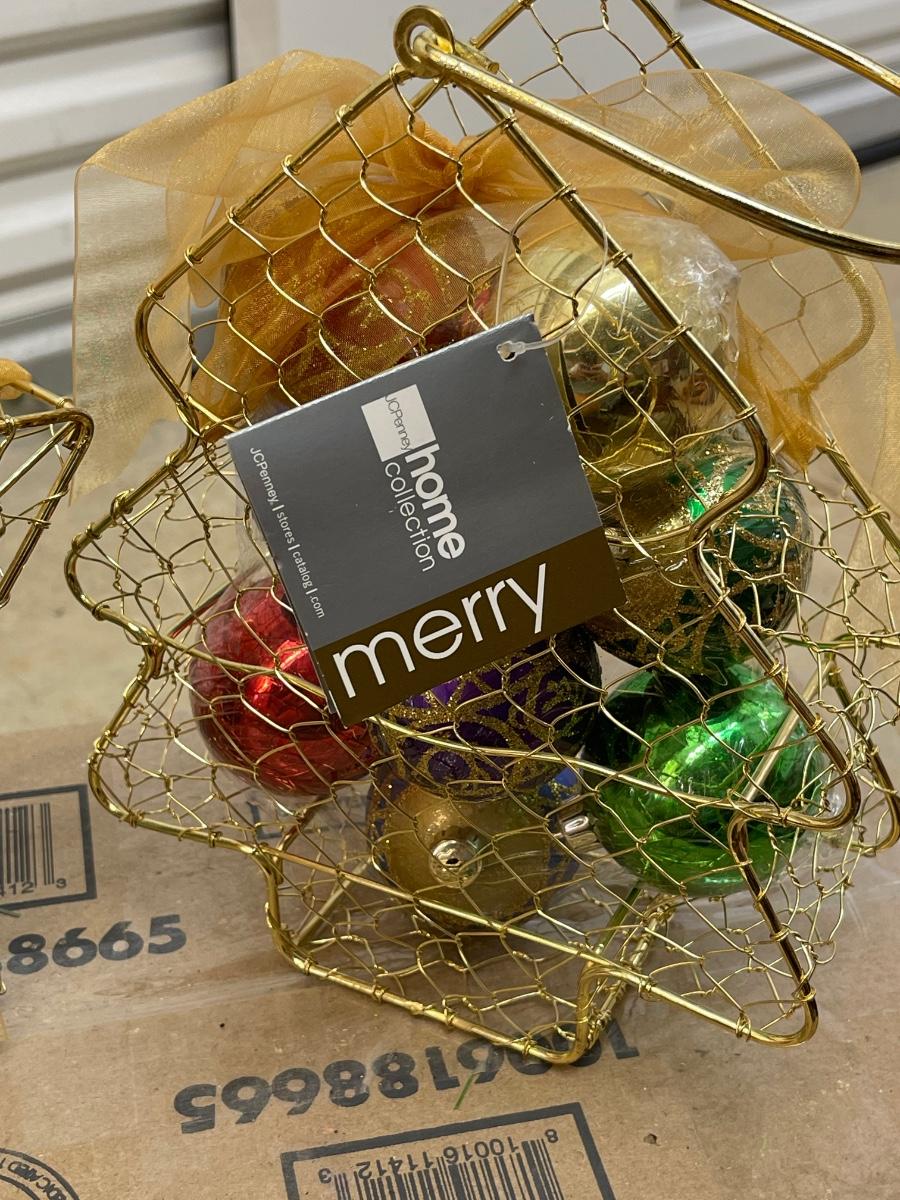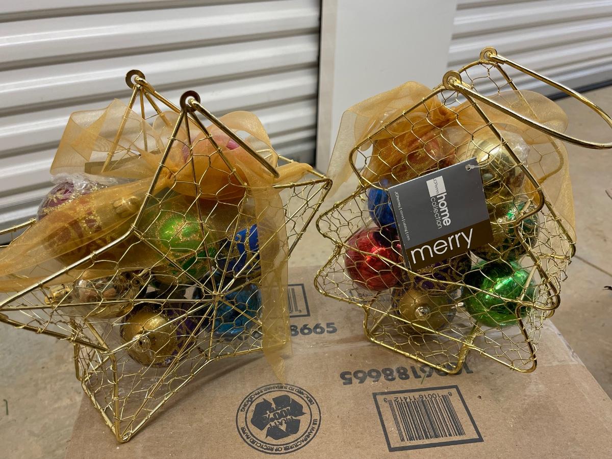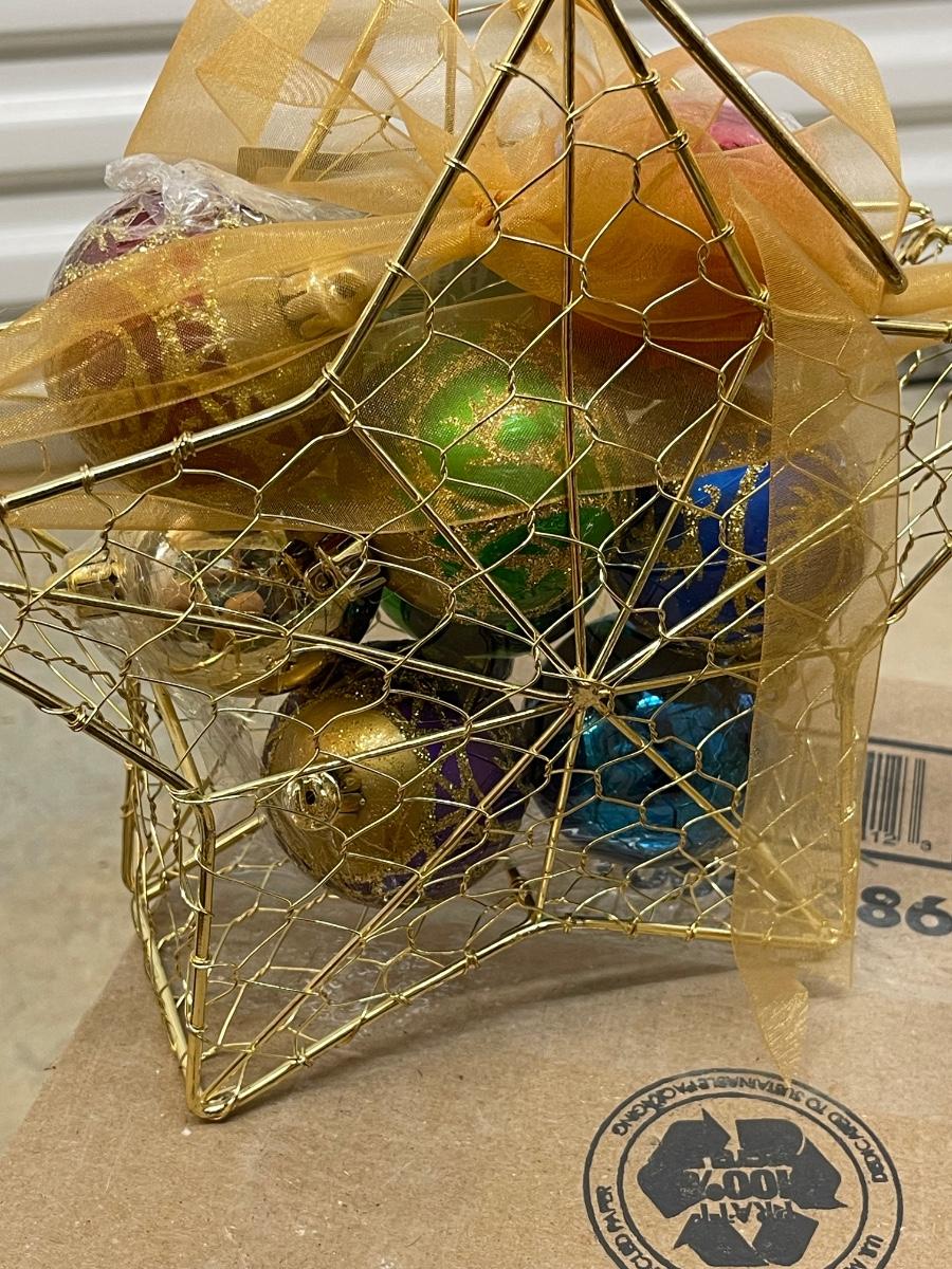 Two NEW Star Baskets with Handles Filled with Ornaments