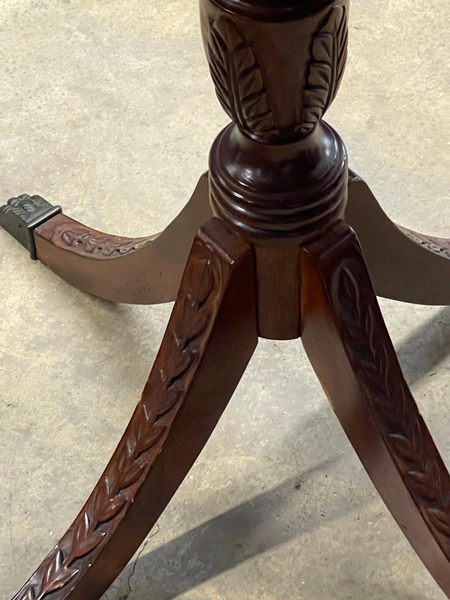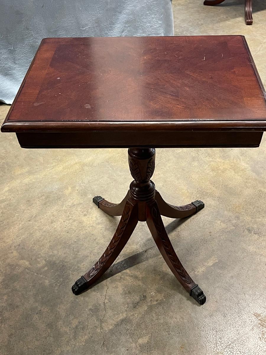 This is an adorable piece measuring 21.5 x 16 x 26. Hand carved on legs. Has a little wear on top but not much.