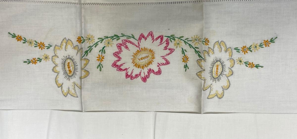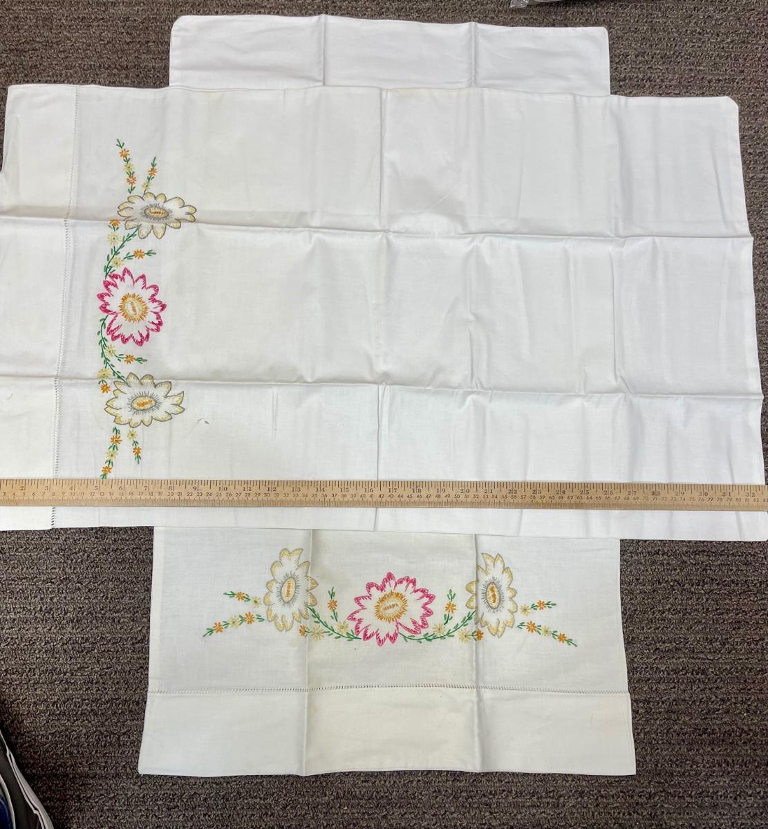 Vintage Pair of Embroidered Pillow Cases - floral pattern