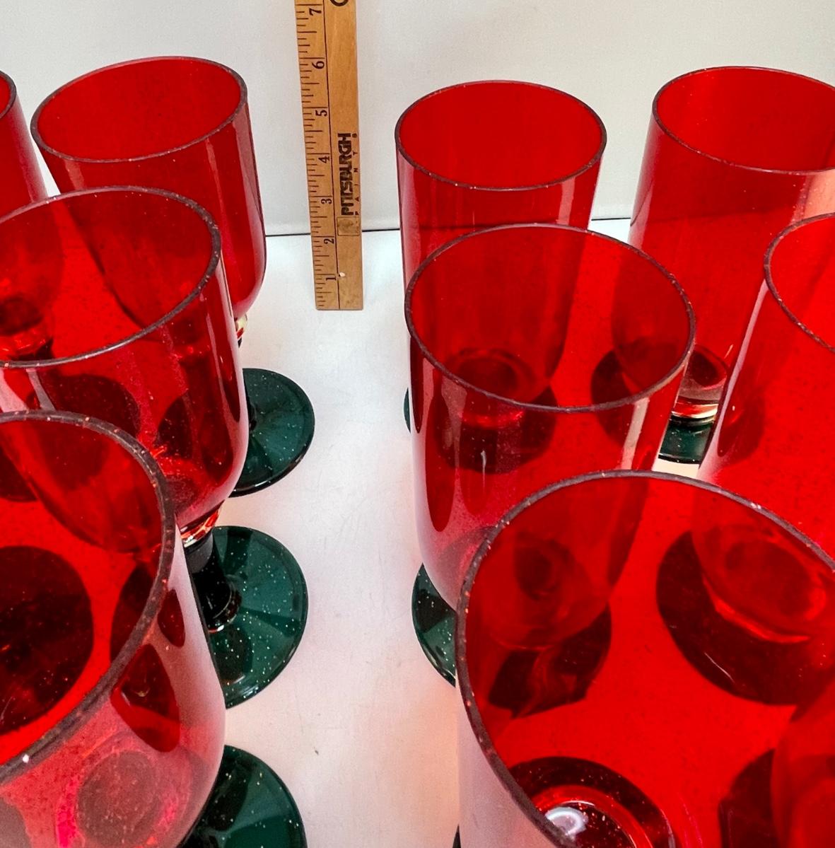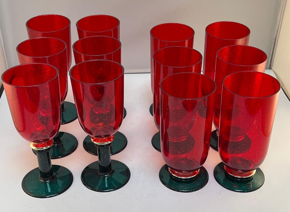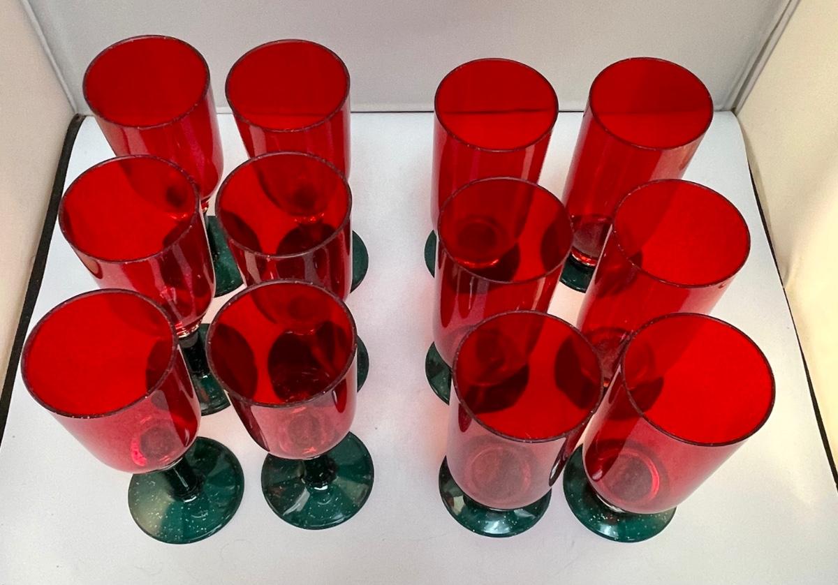 Red and Green Plastic Stemware Holiday Party Drinkware Goblets Drink Glasses. 12 cups, 6 each of the two styles. Good previously used condition.
