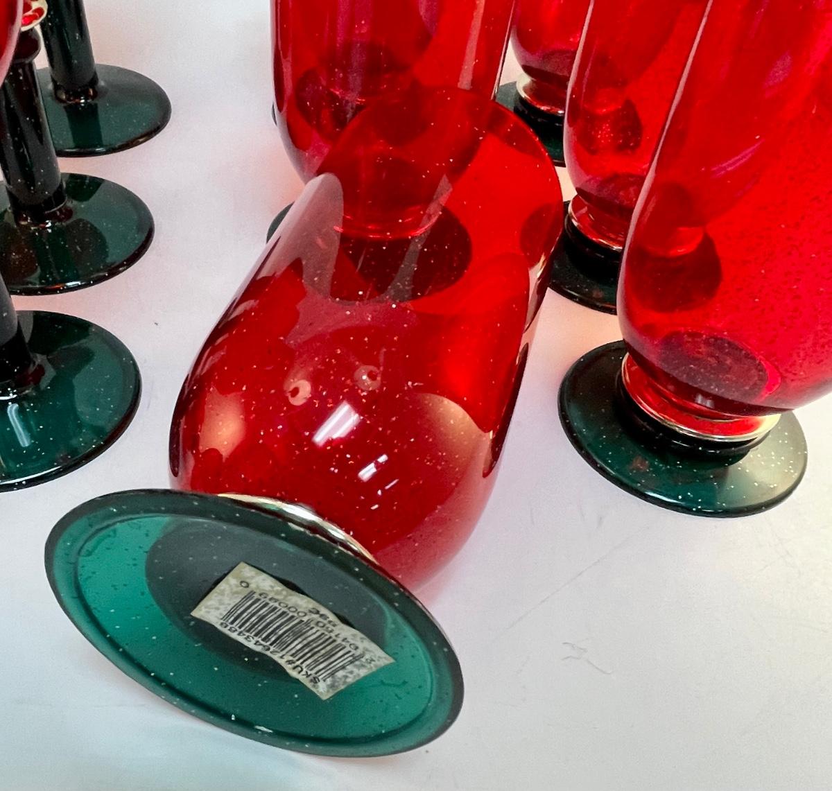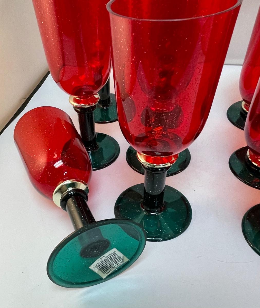 Red and Green Plastic Stemware Holiday Party Drinkware Goblets Drink Glasses