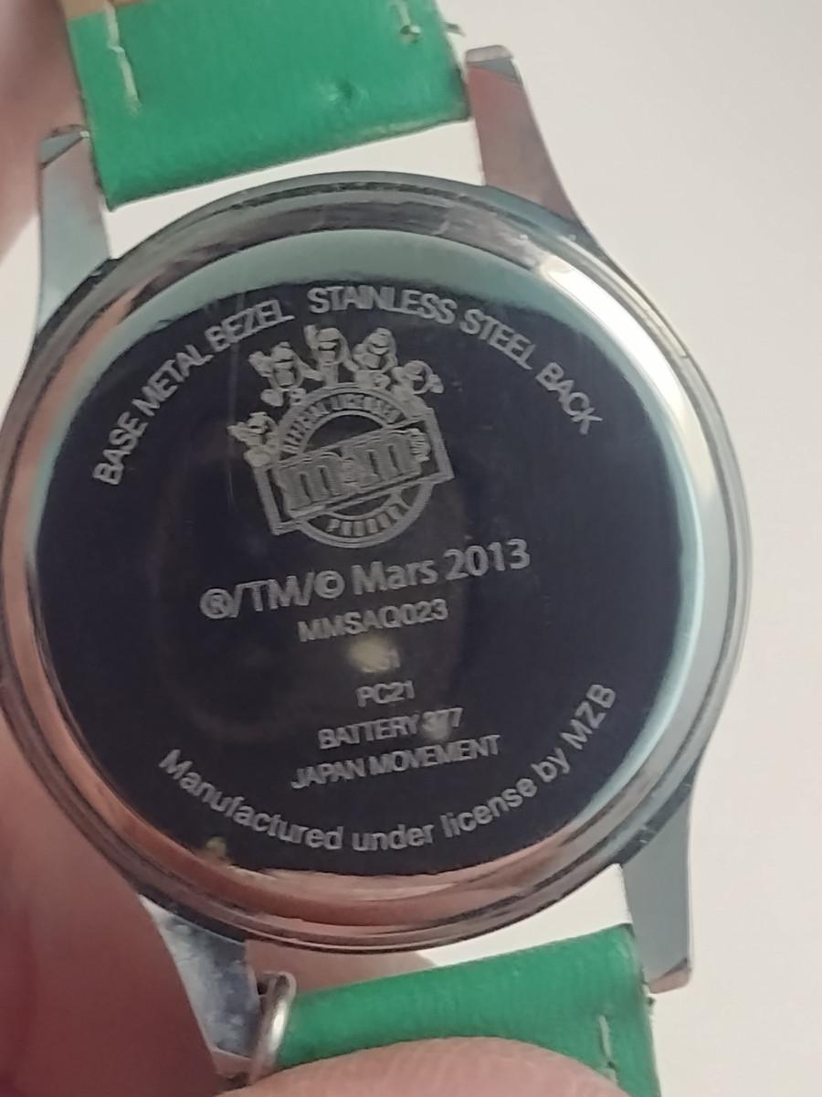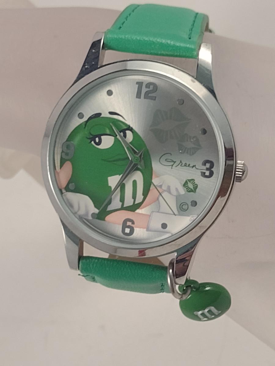 M&Ms 'Green' Wristwatch (#90). Item is not in working condition.