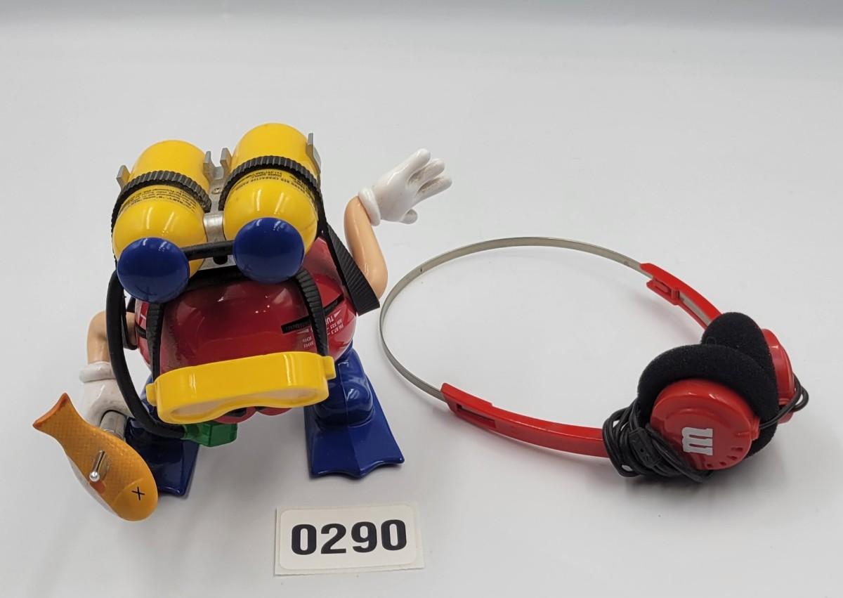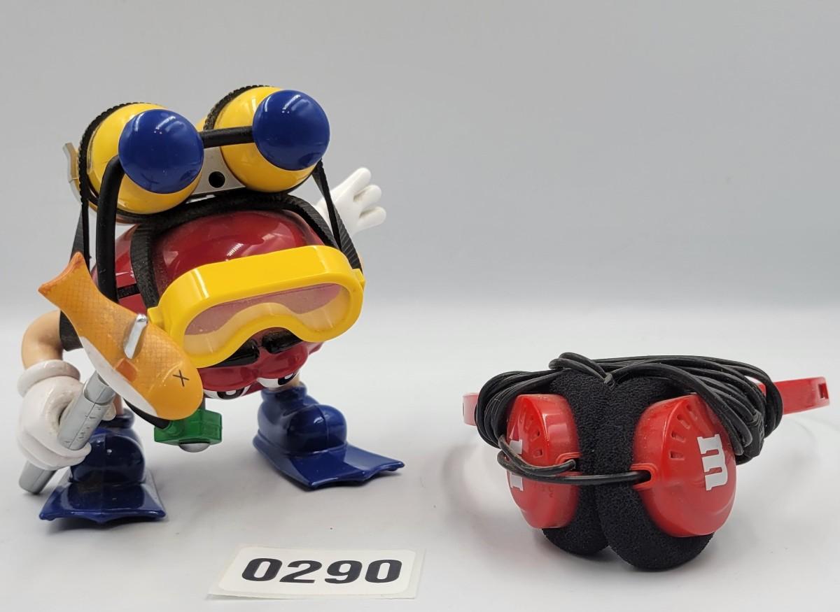 This li'l guy comes with headphones, and is battery powered. No damage or other defects seen on this item