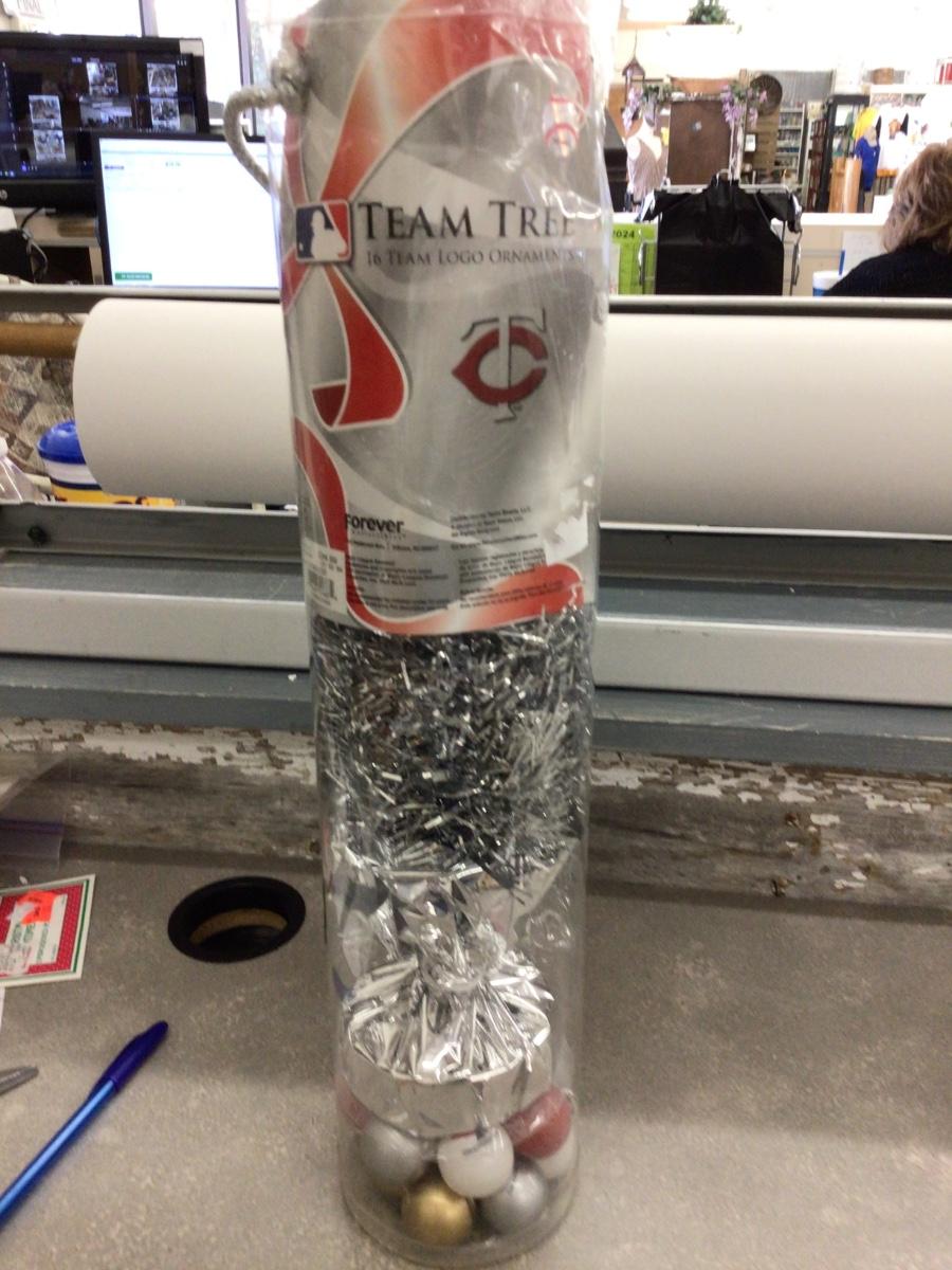 You get a silver Christmas mini tree with MN Twins Logo ornaments. Great for any MN Twins fan.