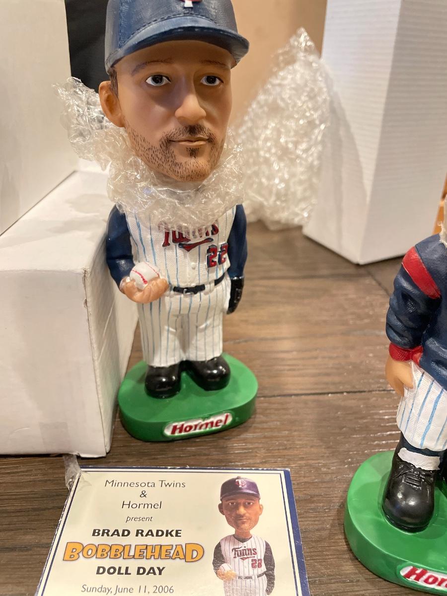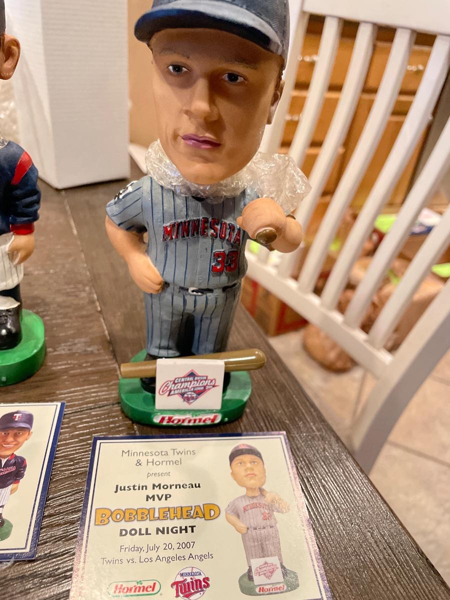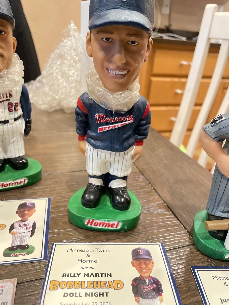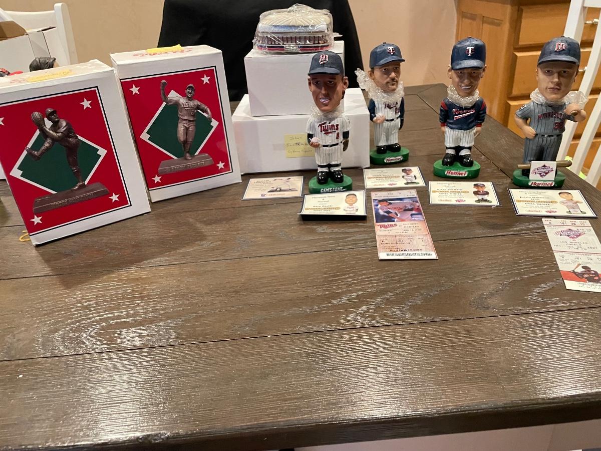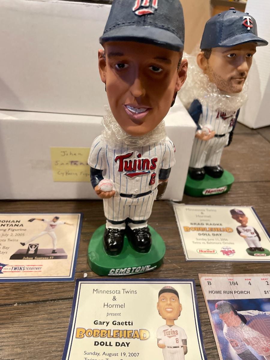 Includes Bert Bylrven, Kirby Puckett Johan Santana, Mini Metro-Dome, Gary Gaetti, Brad Radke, Billy Martin and Justin Morneau and his bat is broken.