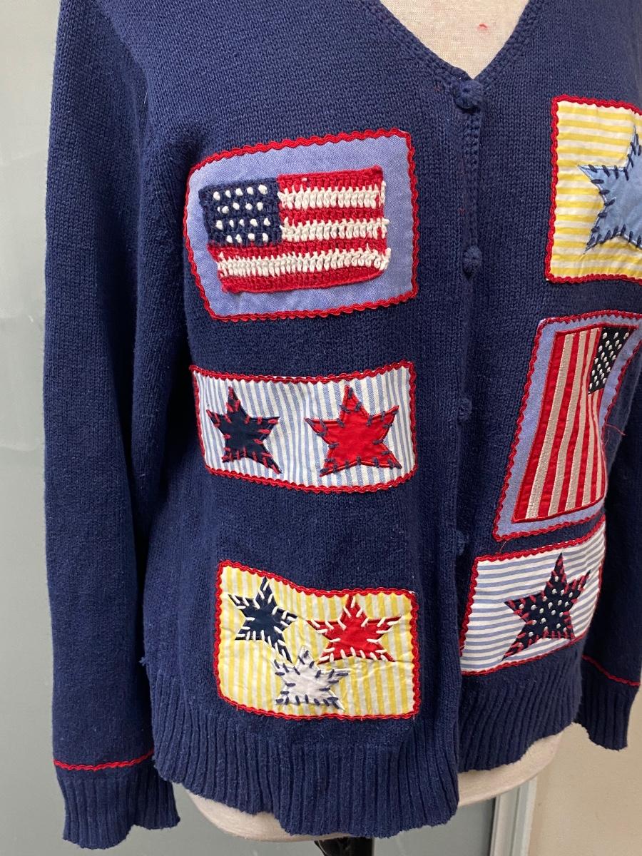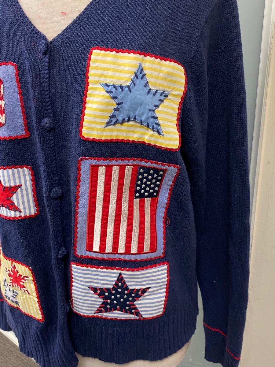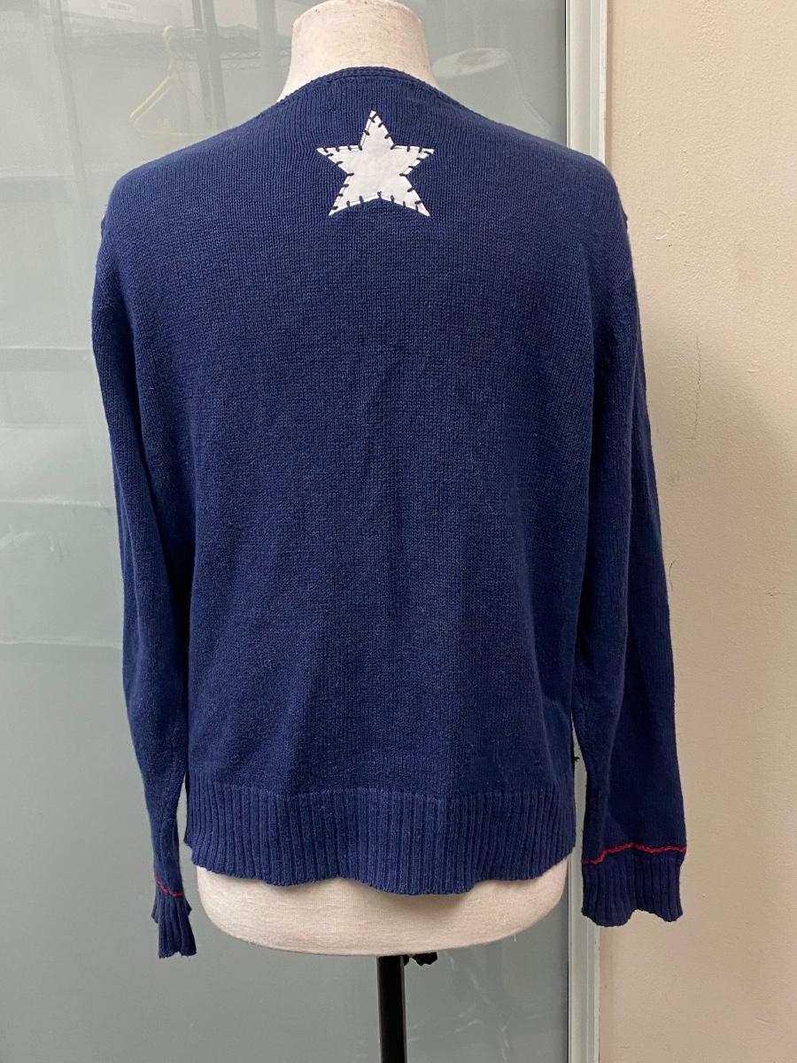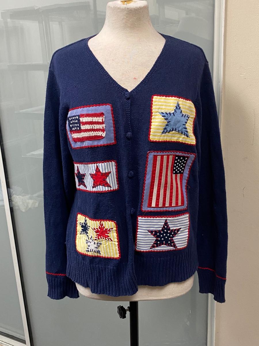 There is no significant damage to the cardigan and is in overall good wearable condition. Check pictures for more details and for sizing.