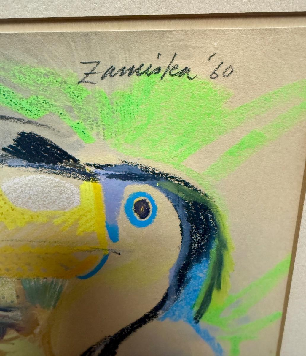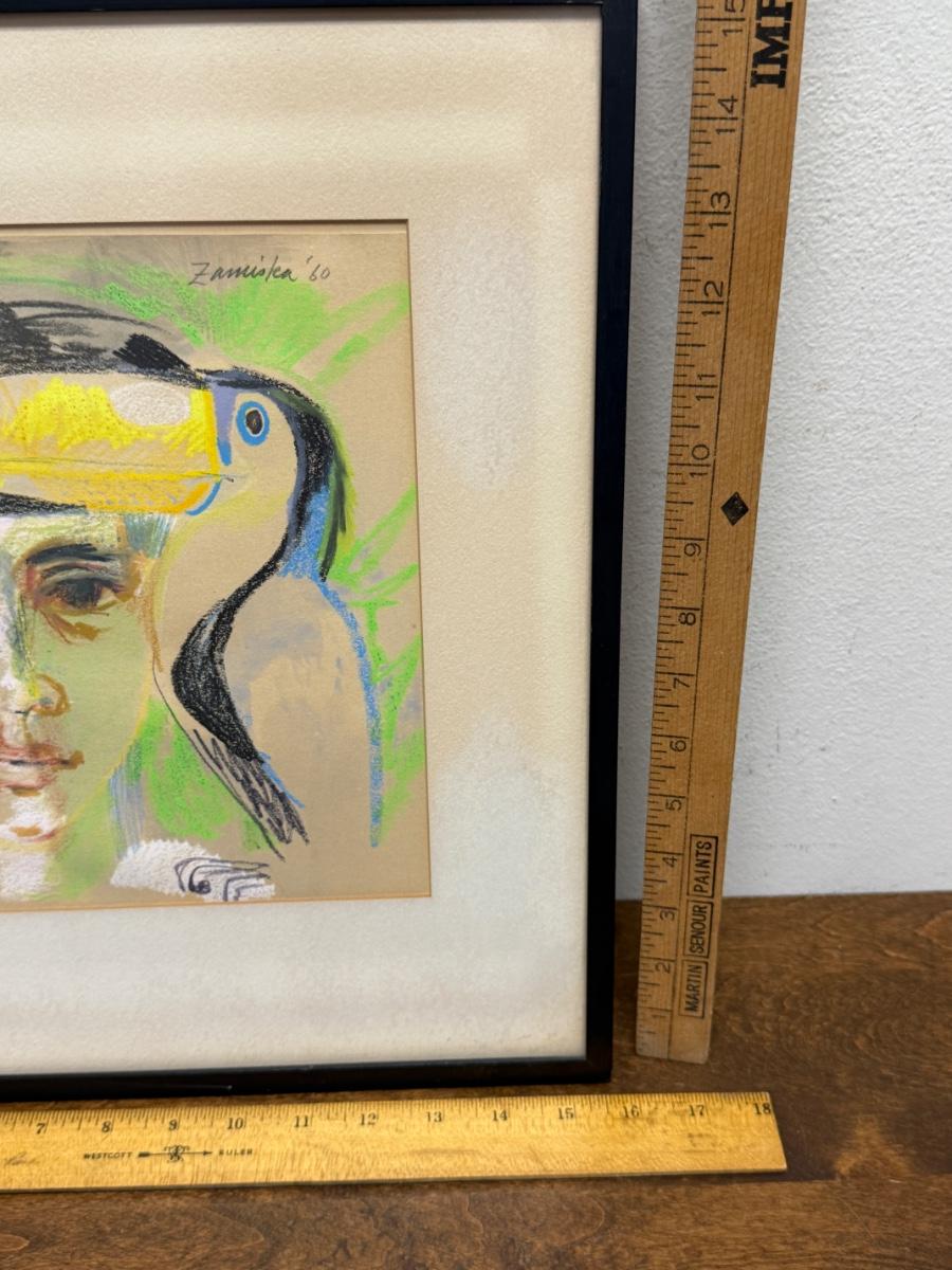 Framed Original Art Human Face & Toucan Face 1960 signed Zamiska
