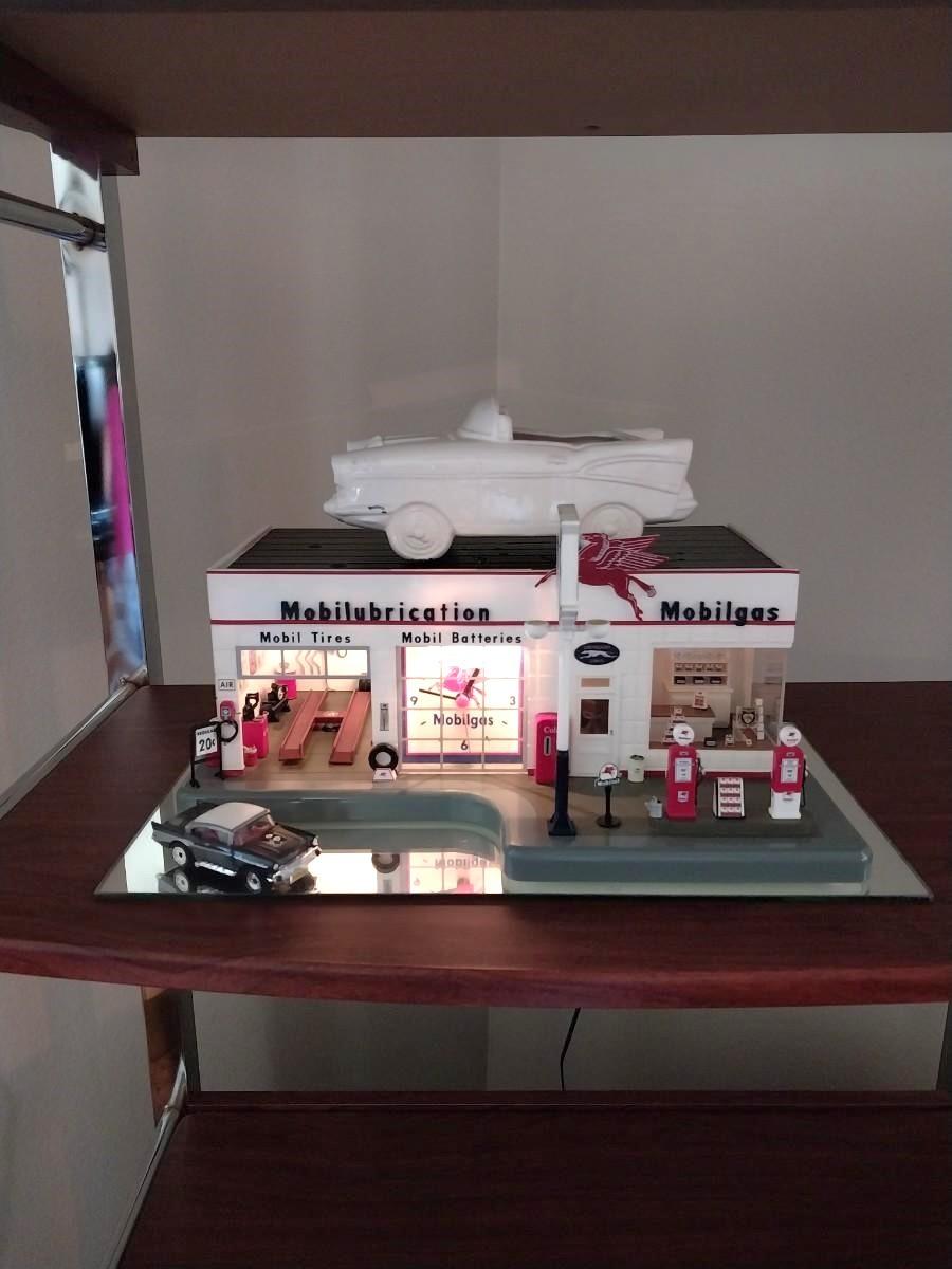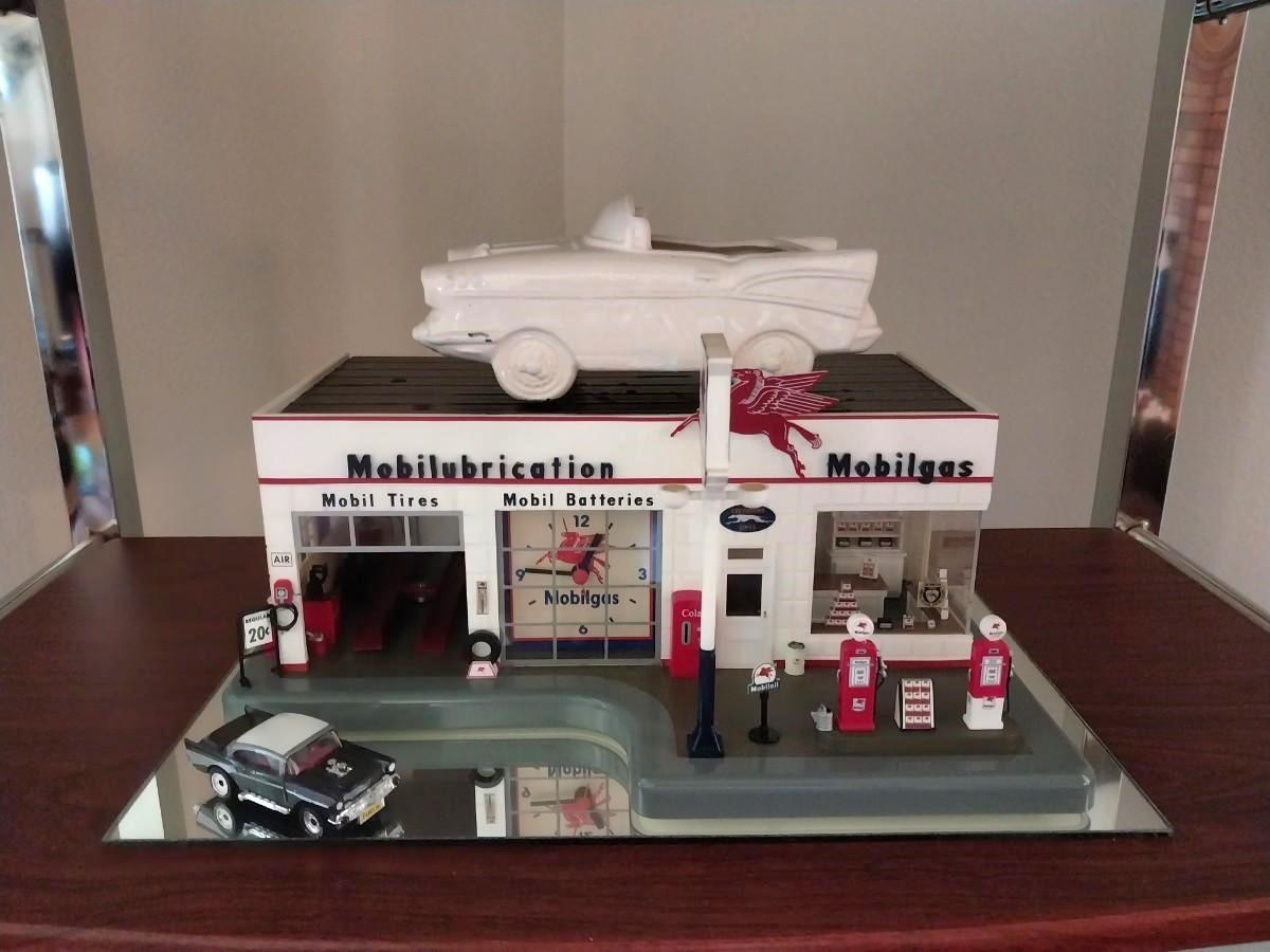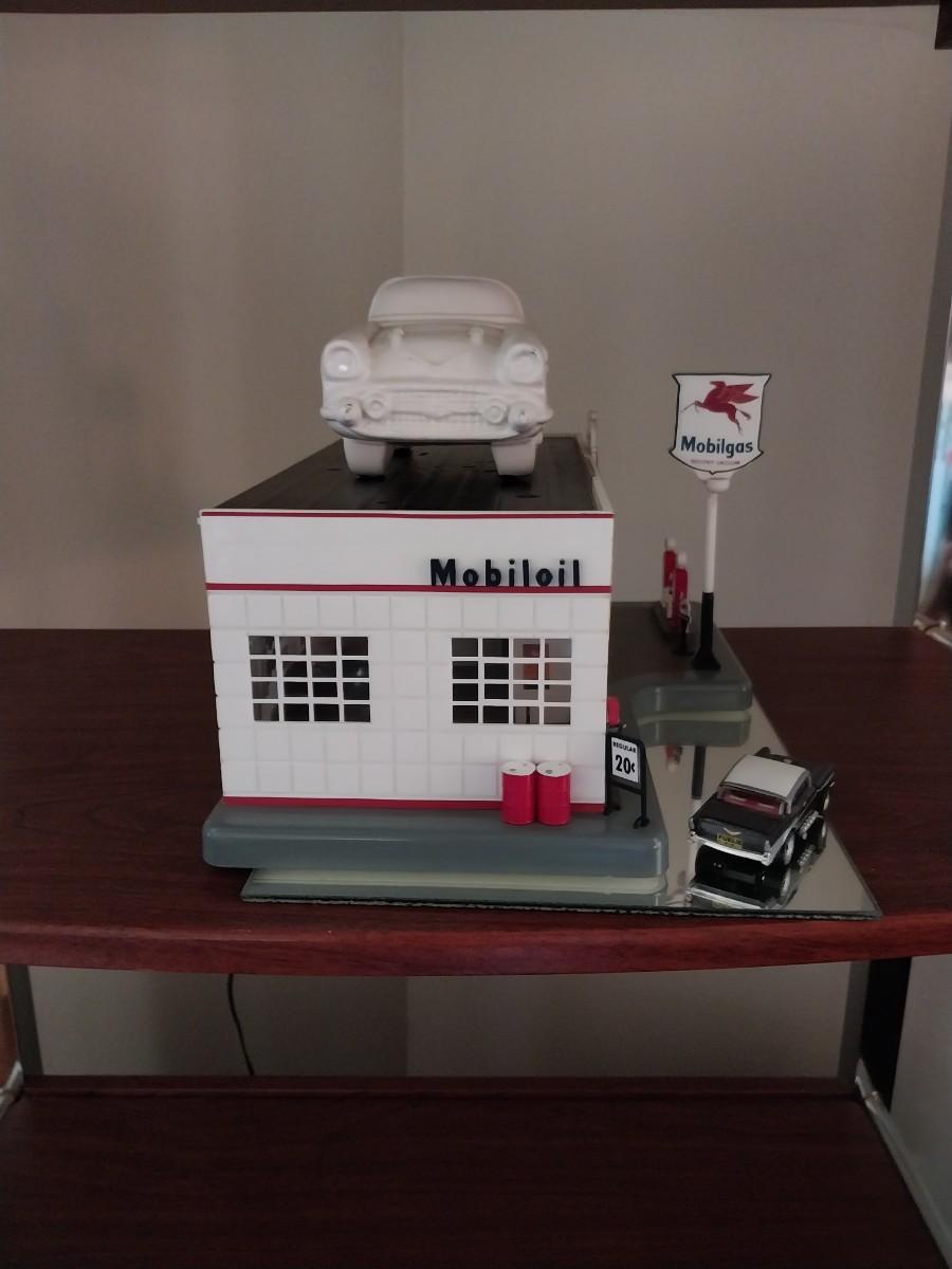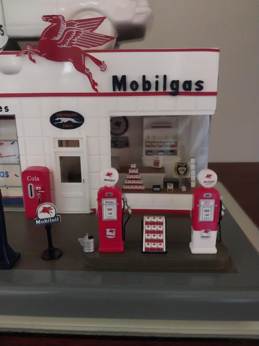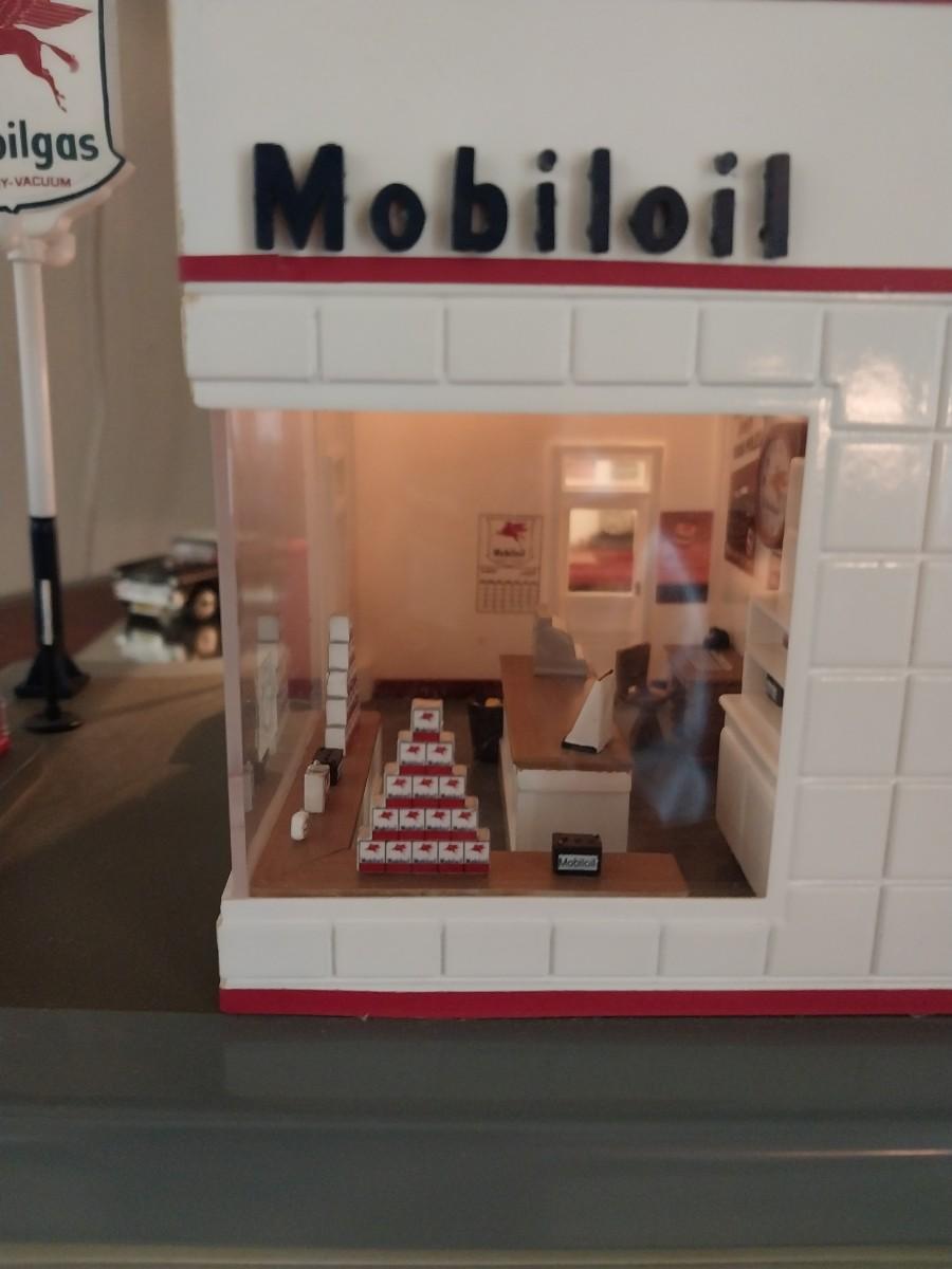 VERY DETAILED MOBIL MODEL GAS STATION THAT LIGHTS UP