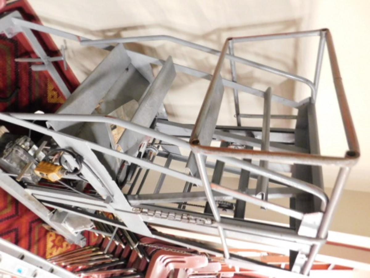 Mobile Commercial Contractor's One-Person Interior Lift with Battery Powered Elevation. Tested and appears to work. Worked at time of business closure. Expect some wear or scratches to finish. Shipping option available via freight or local mover at Buyer's expense. Buyer must have all shipping scheduled within the stated dates and times of pickup. Recommended local mover is Beaty Bros. Moving 828-201-2982