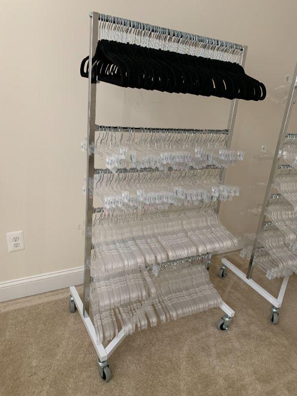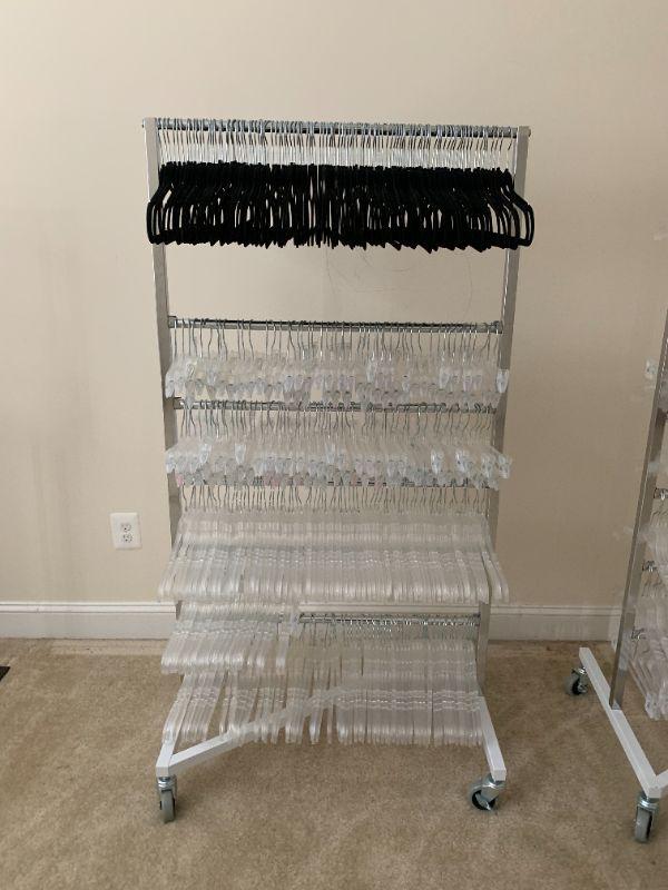 Rolling mobile hanger rack with seven removable bars. Z-base for extra stability. Hangers in the picture are NOT included in this price.