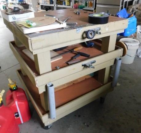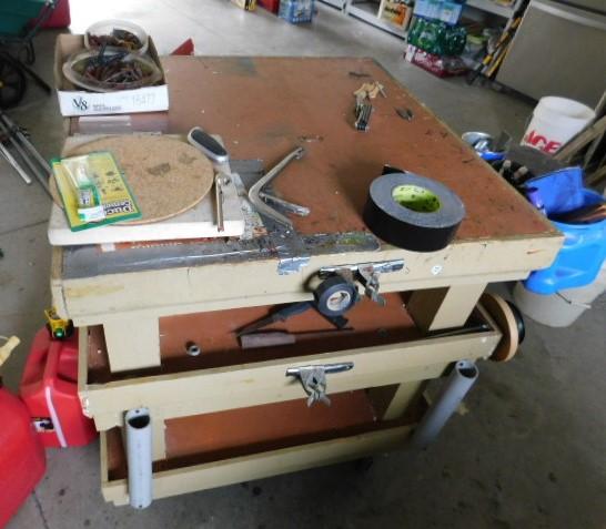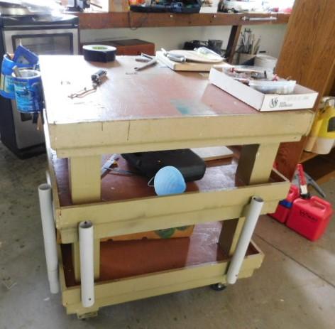 Mobile Work Table with Lower Shelves Has Castors 33"x33"x36" (No Contents)