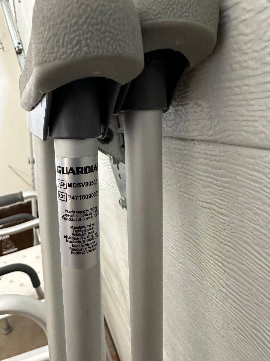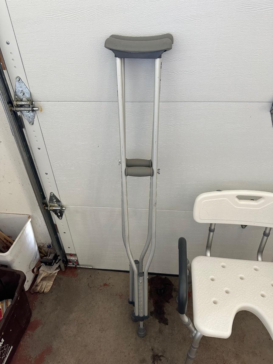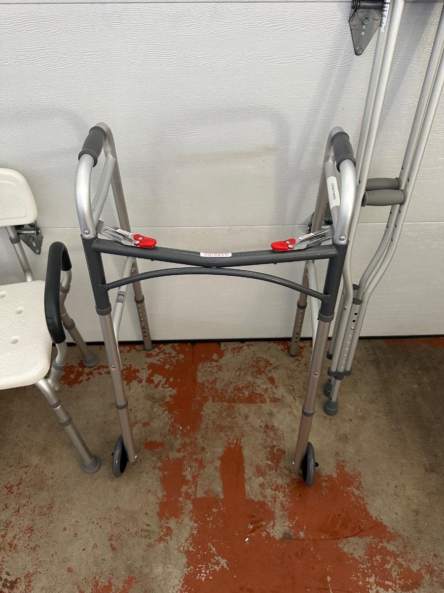 .2 PAIRS OF CRUTCHES, SHIWER SEAT AND WALKER