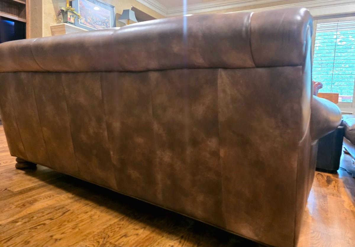 Mocha colored leather sofa #2. The measurements are 88 1/2"L ×43 1/2H.