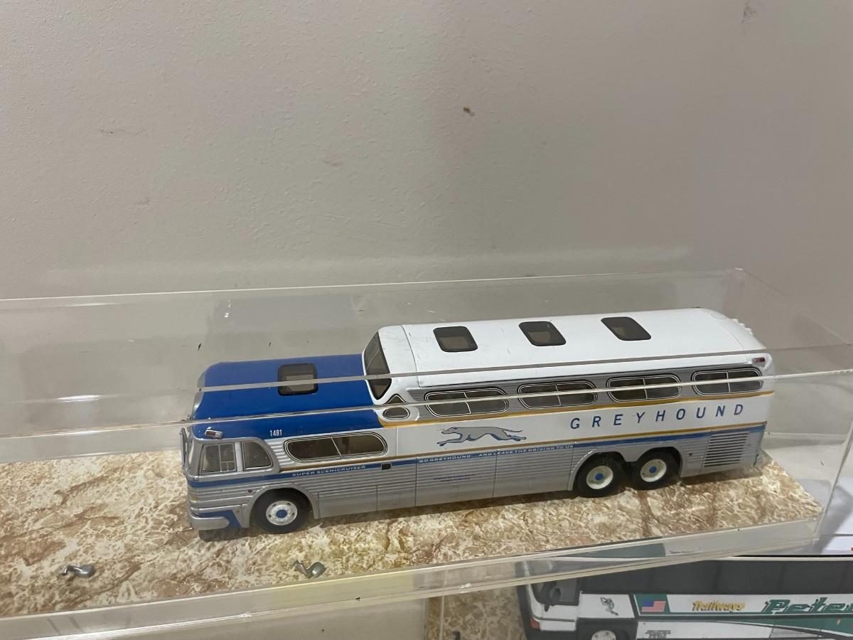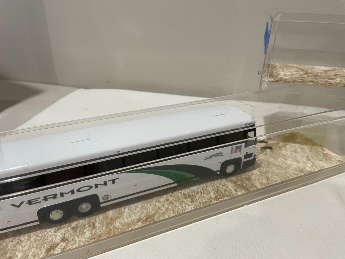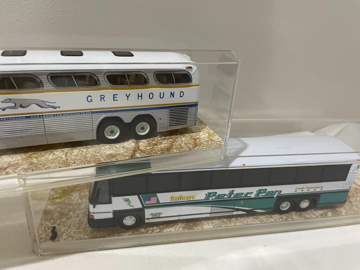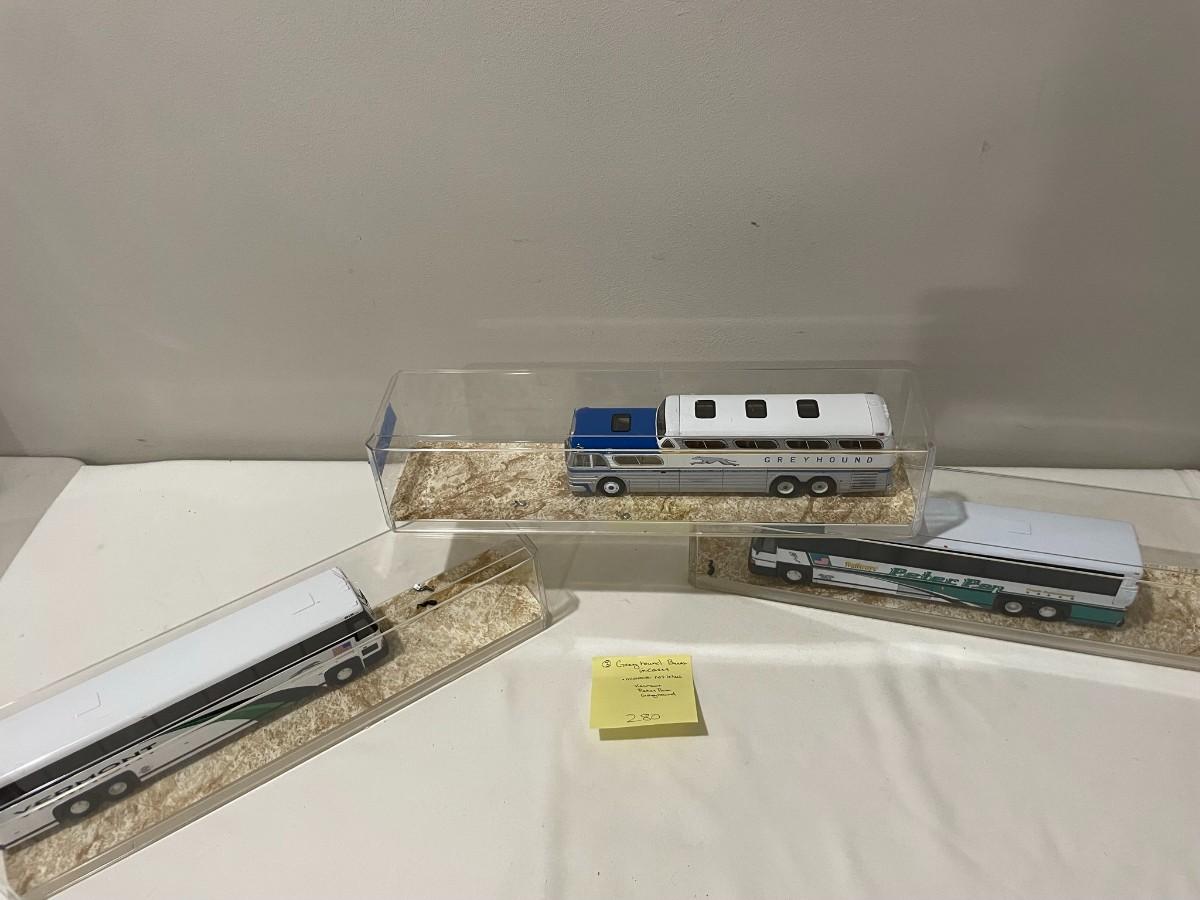 3 Buses, Greyhound, Peterpan, Vermont Diecast in Cases - mirrors not attached