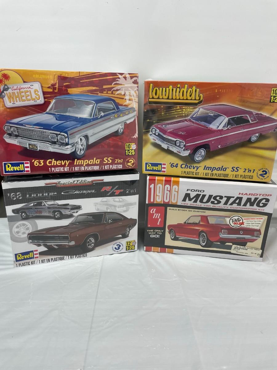 4 Model Cars - 63 Chevy Impala SS, 68 Dodge Charger R/T, 64 Chevy Impala SS, 66 Ford Mustang