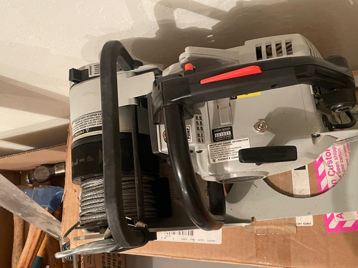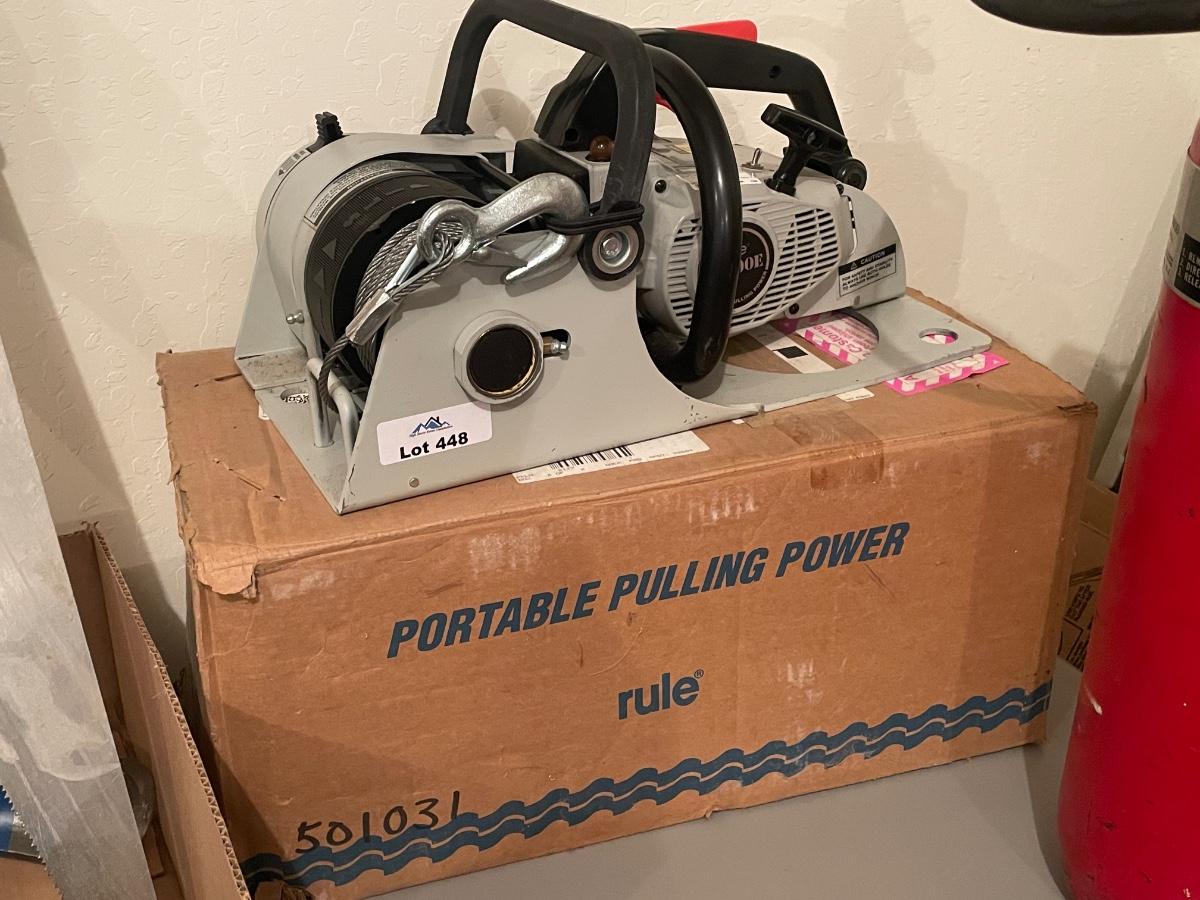 Portable New gas powered winch with box and all paperwork as shown