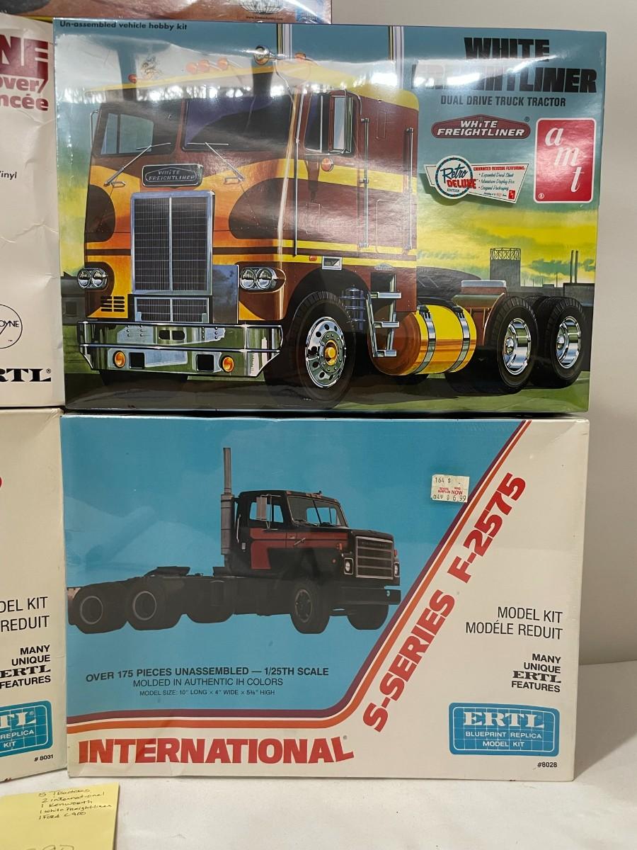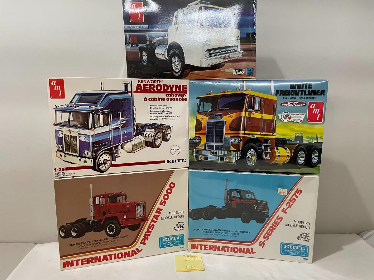 5 Model Kits - 2 International Tractors, 1 Kenworth, 1 White Freighliner, 1 Ford New in Box