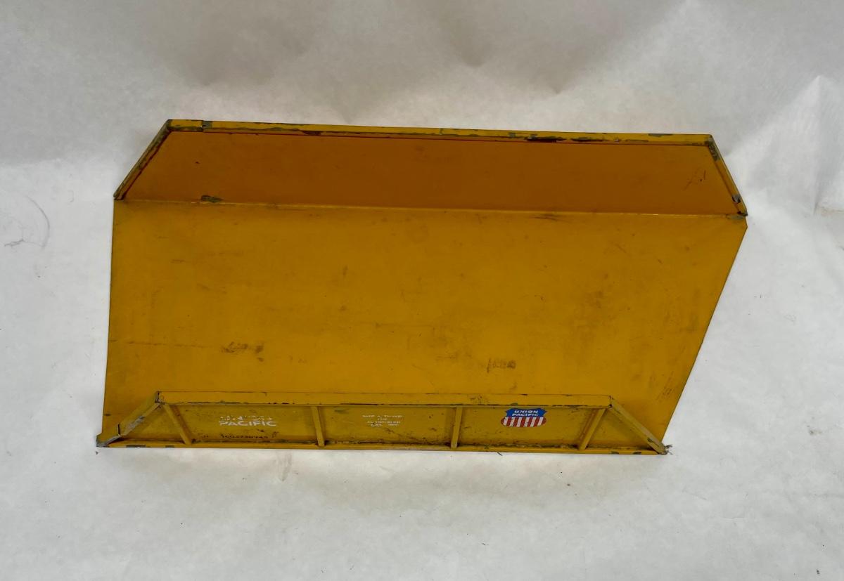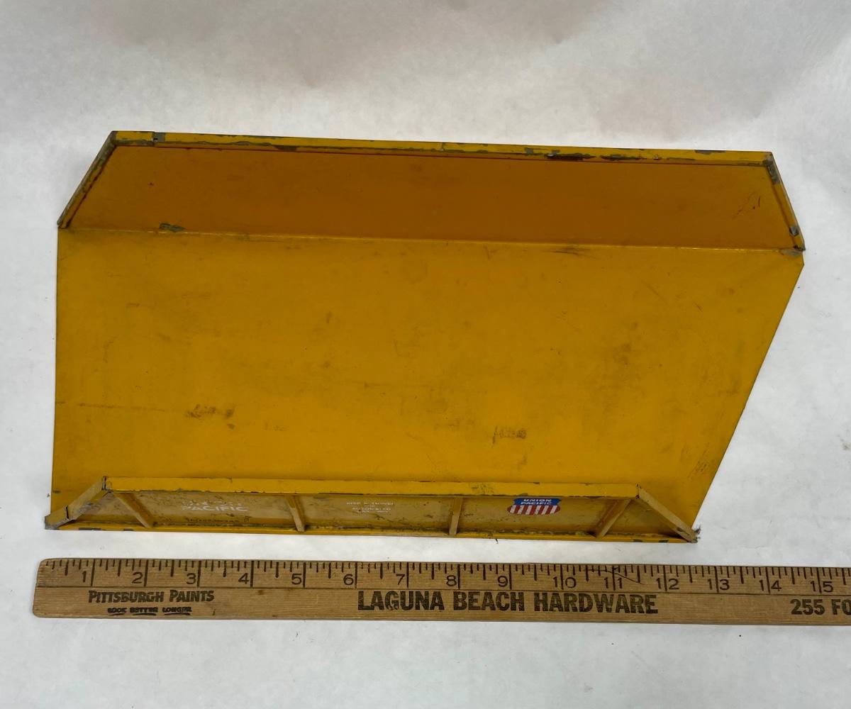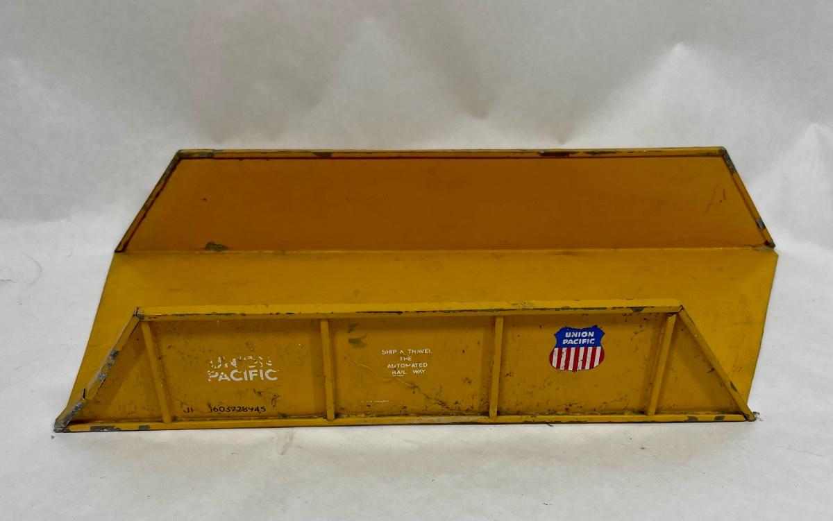 Metal construction, with authentic Union Pacific railroad logo on the sides, as well as life-life lettering and stenciling. Some paint chipping but no rust or damage.
