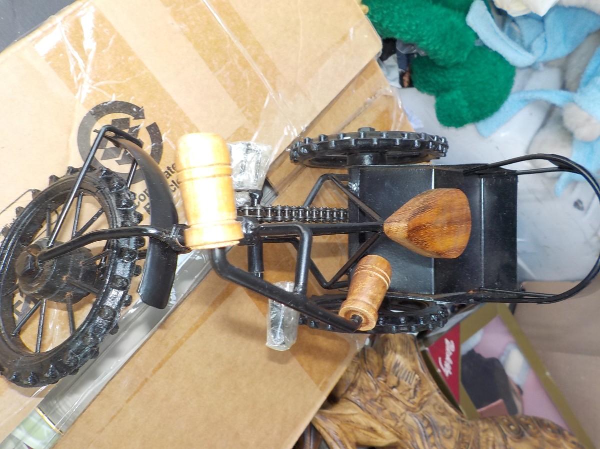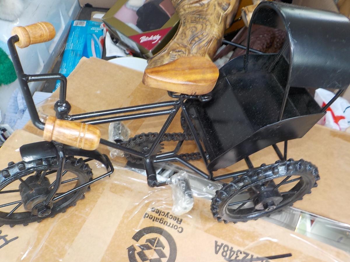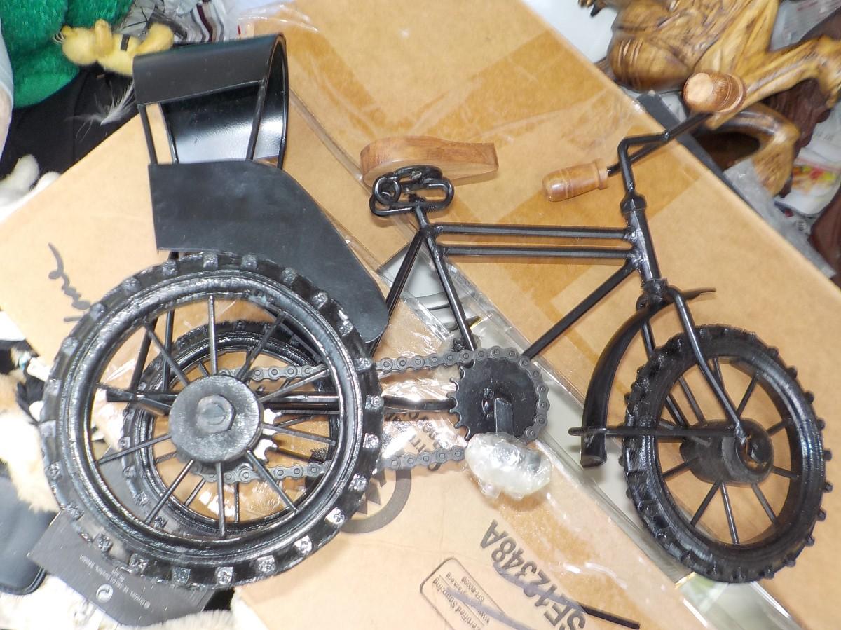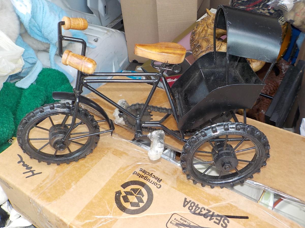 Actually has real chain for wheels and moves when pedaling. Stand 10 in by 14 in.