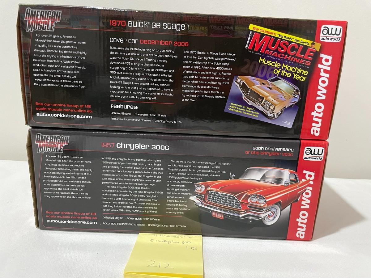 1970 Buick GS Stage 1, 1957 Chrysler 300 C Diecast- New in Box - 1:18 Scale