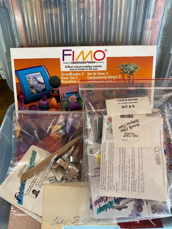 Box of modeling and jewelry clay. Unopened packages. Shape cutters and book also.
