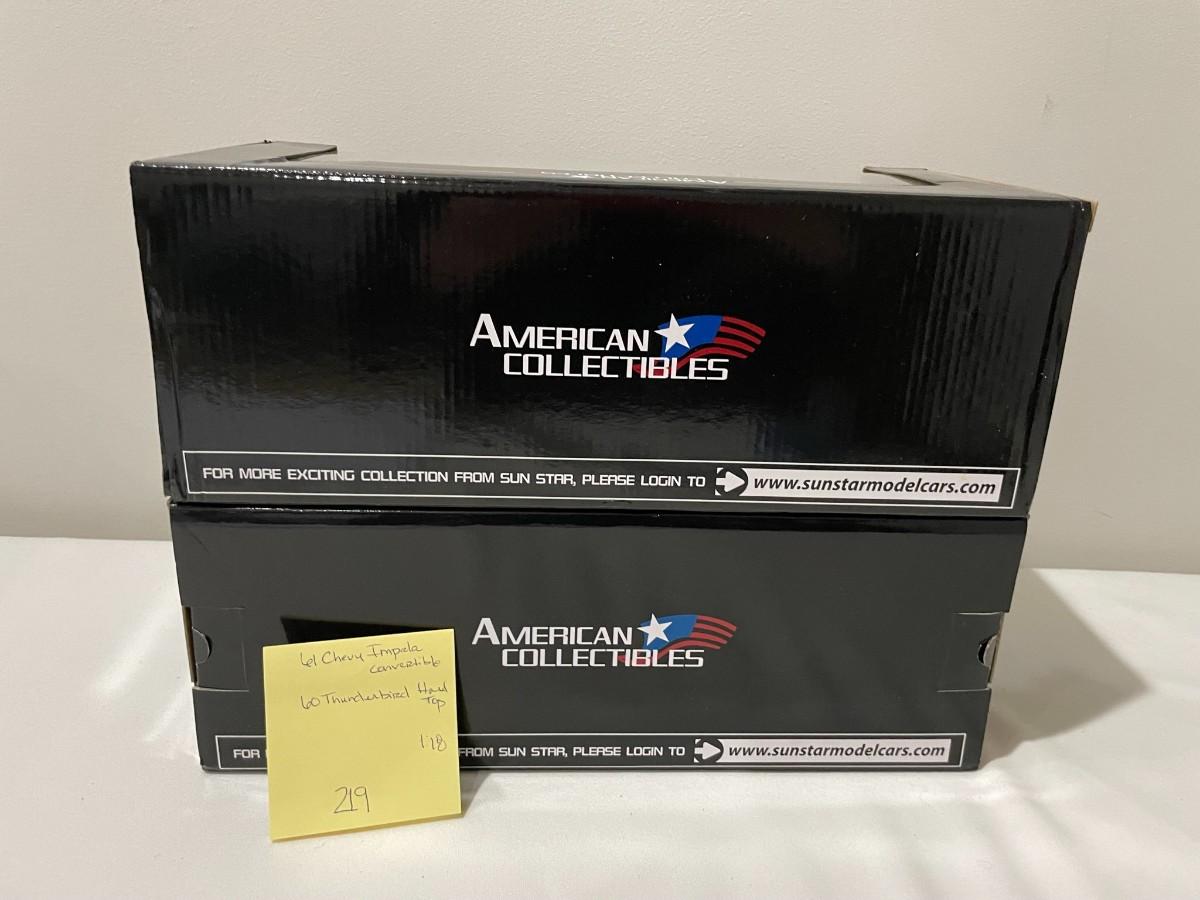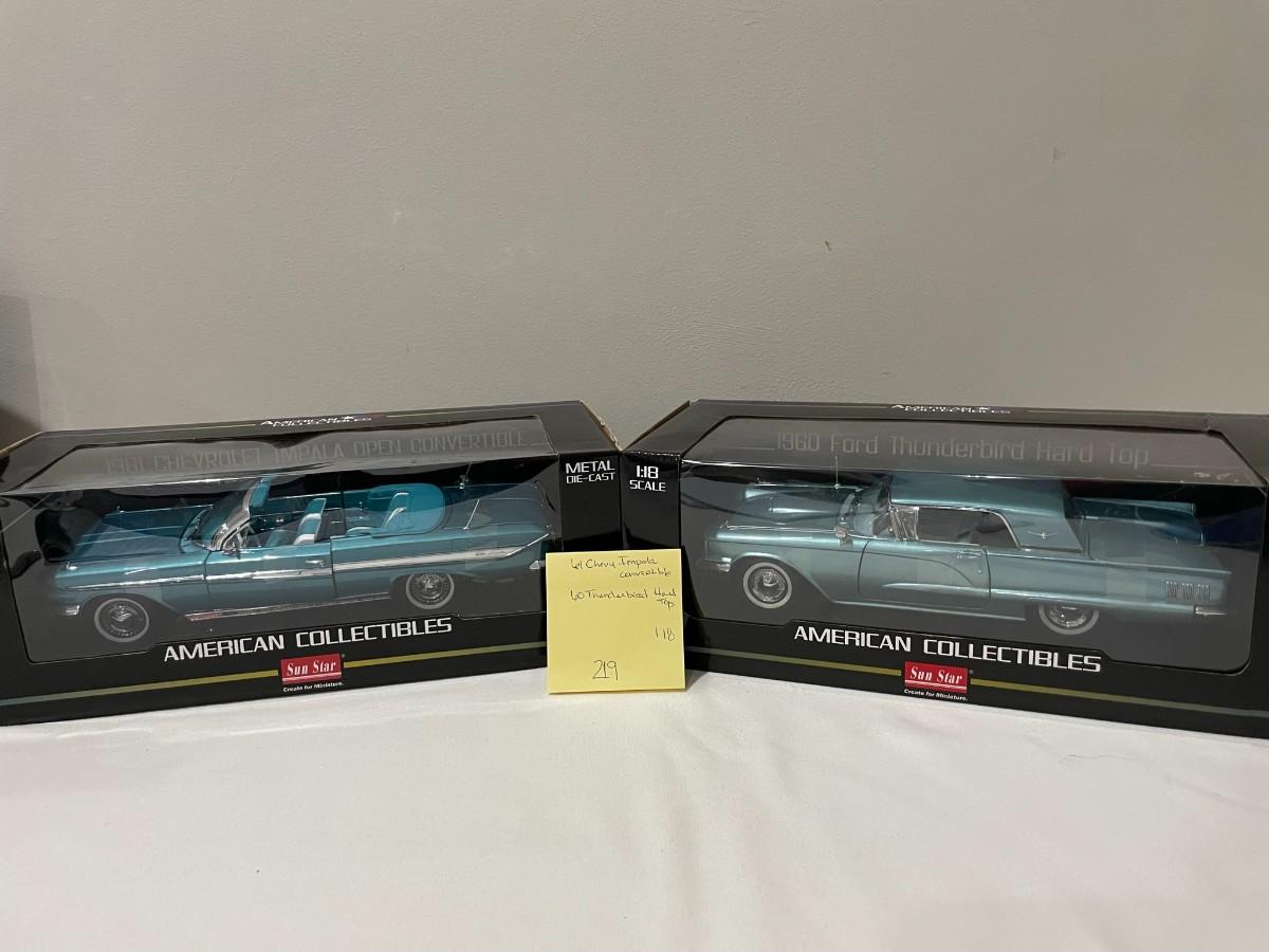 1961 Chevy Impala Convertible, 1960 Ford Thunderbird Hardtop Diecast- New in Box - 1:18 Scale