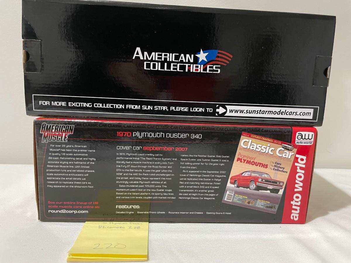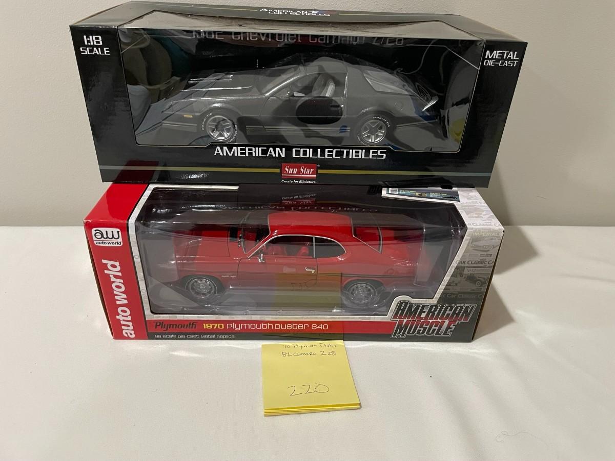 1970 Plymouth Duster, 1982 Chevy Camaro Z28 Diecast- New in Box - 1:18 Scale